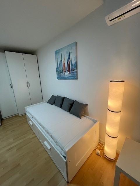 A fully renovated and newly furnished 21 m² studio apartment is for sale in a quiet and well-connected part of Novi Zagreb – Utrine. The apartment is located on the 4th floor of a high-quality reinforced concrete building, known for its solid and durable construction.