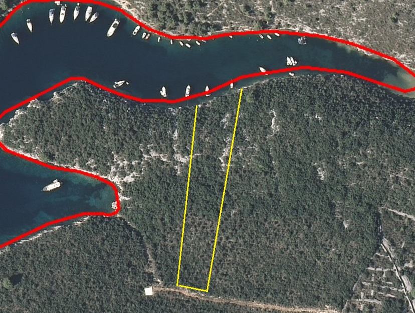 Zemljište se nalazi prvi red do mora , a do njega vodi zemljani put.