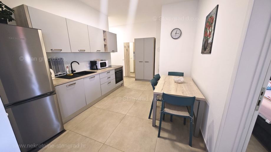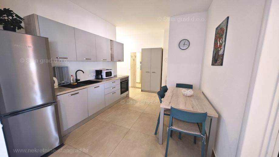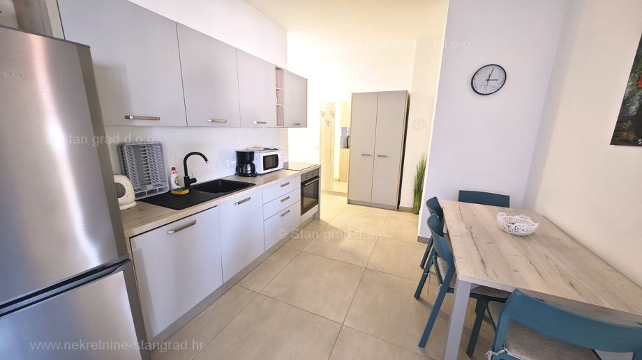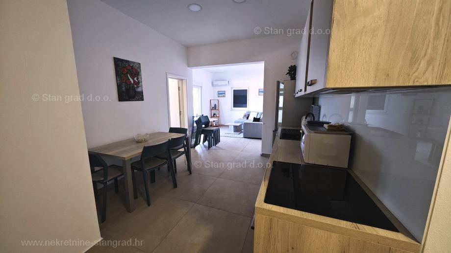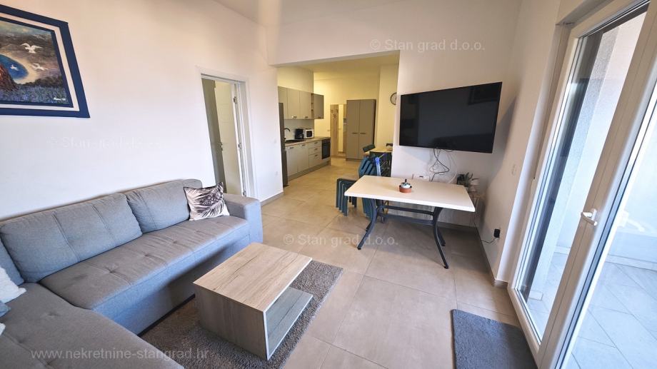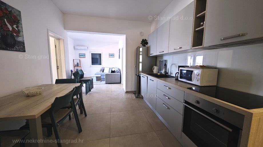 Unutar široke ponude nekretnina kod agencije Stan Grad Immobilien se prodaje vrlo dobar i uređen turistički apartman u traženoj mediteranskoj jadranskoj destinaciji otok Krk. Ovaj apartman se nalazi na vrlo dobroj lokaciji u Uvali Soline, u blizini centra, mora i svih sadržaja nužnih za komforno, ugodno i sigurno ljetovanje. Prema vrsti nekretnine, ovo je jednoetažni apartman srednje veličine. U vrlo dobrom i kvalitetnom objektu, apartman je smješten na 2. etaži. Površina ovog apartmana iznosi ukupno 61 m2. Unutar navedene površine su dnevni boravak i kuhinja, 2 spavaće sobe, kupaonica i balkon. Odlično održavana unutrašnjost nekretnine je u potpunosti uređena kvalitetnim namještajem i svom potrebnom tehničkom opremom. Vlasnik apartmana može neometano koristiti sve pripadajuće zajedničke dijelove i prostore nekretnine. Površina dvorišta apartmana daje mogućnost komfornog parkiranja jednog automobila. Povrh ranije opisanih svojstava, nekretnina je vrlo dobro orijentirana te pruža primamljiv pogled iz apartmana na more i prirodni krajolik. Ovaj je apartman vlasništvo fizičke osobe pa je kupac prilikom prijepisa njegovog vlasništva na svoje ime u obvezi plaćanja poreza na promet u visini 3%. Vlasnik garantira kompletnu i urednu tehničko-vlasničku dokumentaciju te jednostavan prijenos apartmana na kupca. Naš vas tim očekuje na istaknutoj adresi kvarnerskog ureda tvrtke na otoku Krku. Povrh stručnog prezentiranja naravnog i pravnog stanja nekretnine, ako se odlučite za kupovinu, agencija Stan Grad Immobilien rado će vam rado pomoći u prijenosu vlasništva nekretnine.