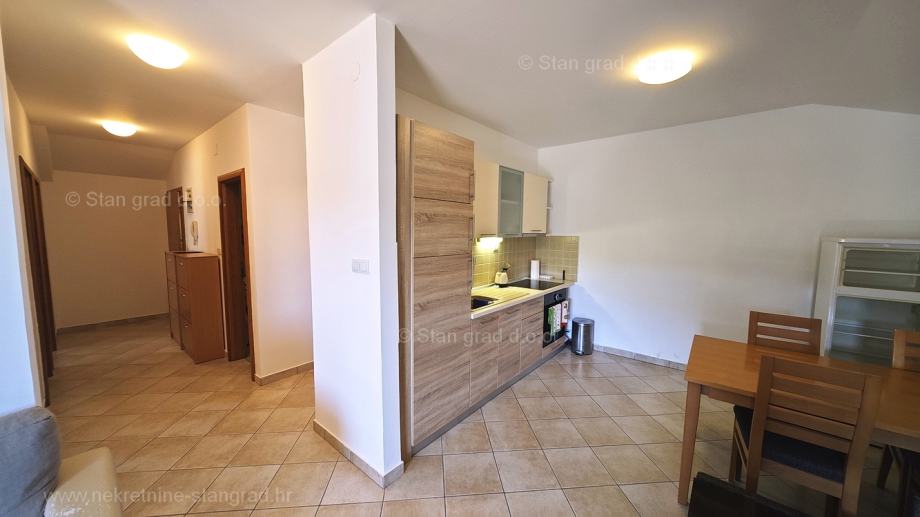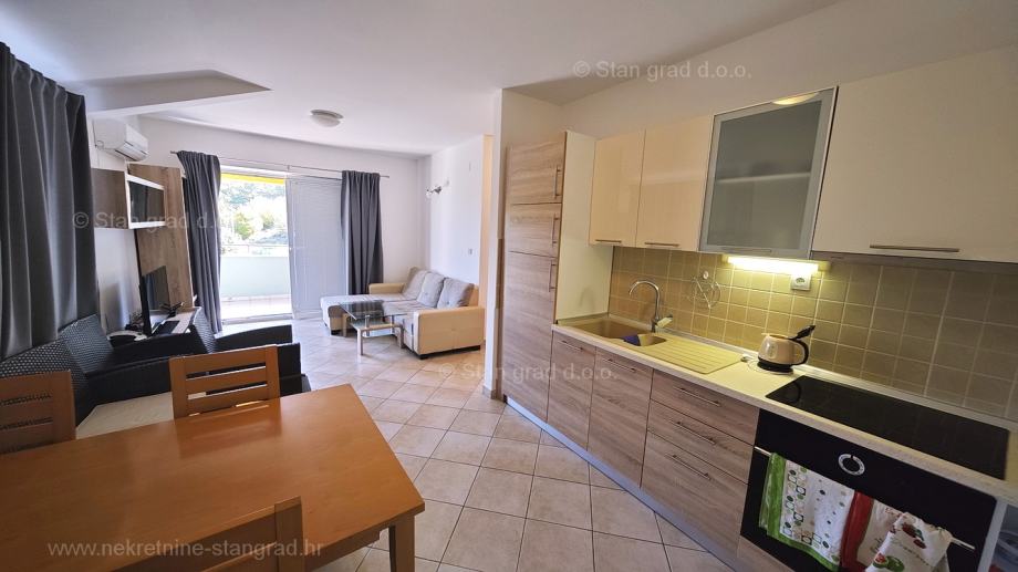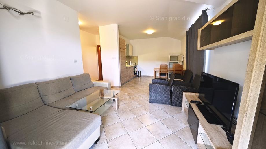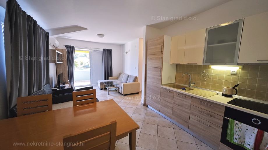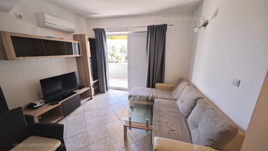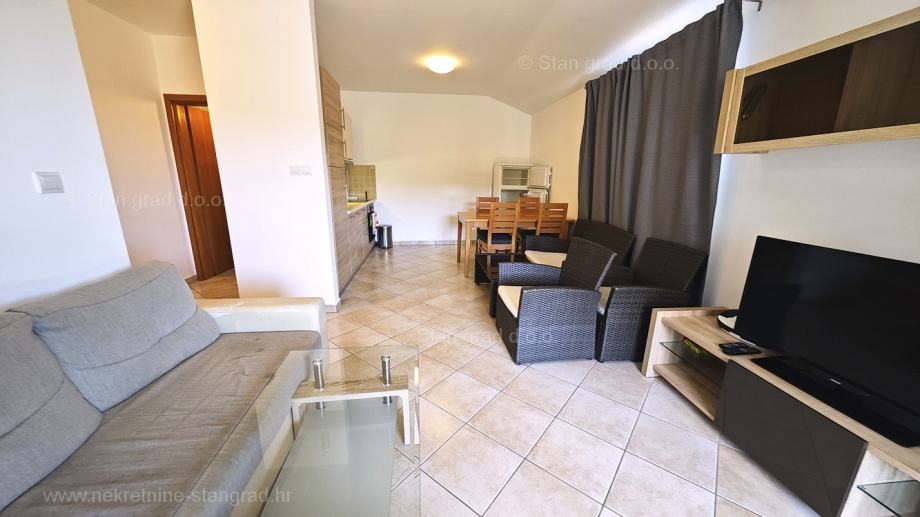 Iz ponude niza dobrih nekretnina kod agencije Stan Grad Immobilien izdvojen je kvalitetan apartman na traženom obalnom mediteranskom odredištu otok Krk. Predmetni apartman je skladno uklopljen u karakteristični primorski okoliš te nudi komforan pješački odlazak na plažu i dostupnost svih sadržaja u Uvali Soline. U naravi je to vrlo prostrani i komforni jednoetažni apartman. U okviru vrlo lijepe građevine, apartman je pozicioniran na 2. etaži. Površina ovog apartmana iznosi ukupno 73 m2. Ovu površinu zauzimaju dnevni boravak i kuhinja, 2 spavaće sobe, kupaonica i terasa. Unutarnji prostori nekretnine su osobito dobro održavani te u potpunosti opremljeni potrebnim tehničkim uređajima i vrlo kvalitetnim namještajem. Vlasnik apartmana može neometano koristiti sve pripadajuće zajedničke dijelove i prostore nekretnine. Površina dvorišta apartmana daje mogućnost komfornog parkiranja jednog automobila. Osim ranije navedenih karakteristika, apartman ima odličan položaj i usmjerenost koji njegovim žiteljima osiguravaju prekrasan otvoreni pogled na more. Ovaj je apartman u sustavu PDV-a. Prodavatelj apartmana jamči kompletnu i urednu dokumentaciju te jednostavan prijenos nekretnine na kupca. Očekujemo vas na Kvarneru, na adresi ureda na otoku Krku. Kupcu ove nekretnine će prodajni tim agencije Stan Grad Immobilien rado pomoći kod prijenosa vlasništva nekretnine u zemljišnu knjigu te prijenosa računa za struju, vodu i odvoz smeća na svoje ime.