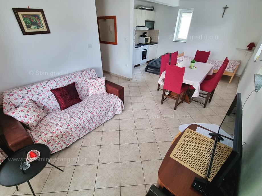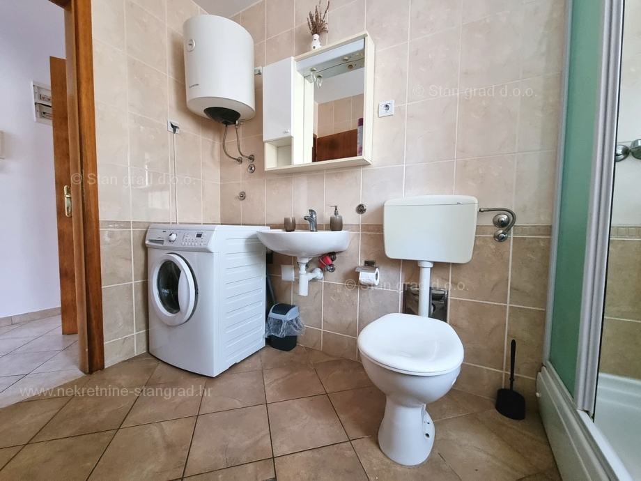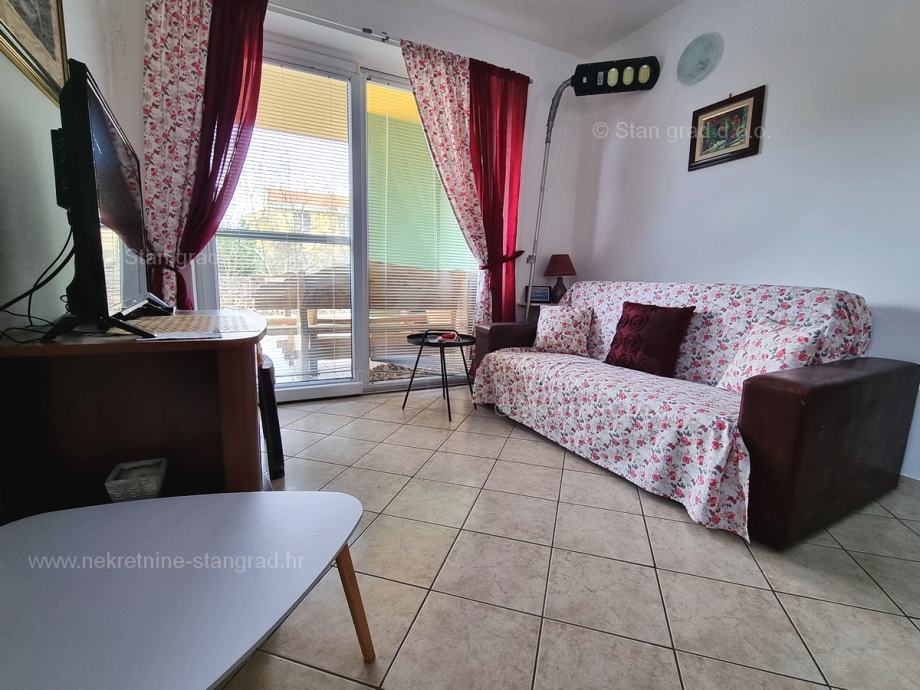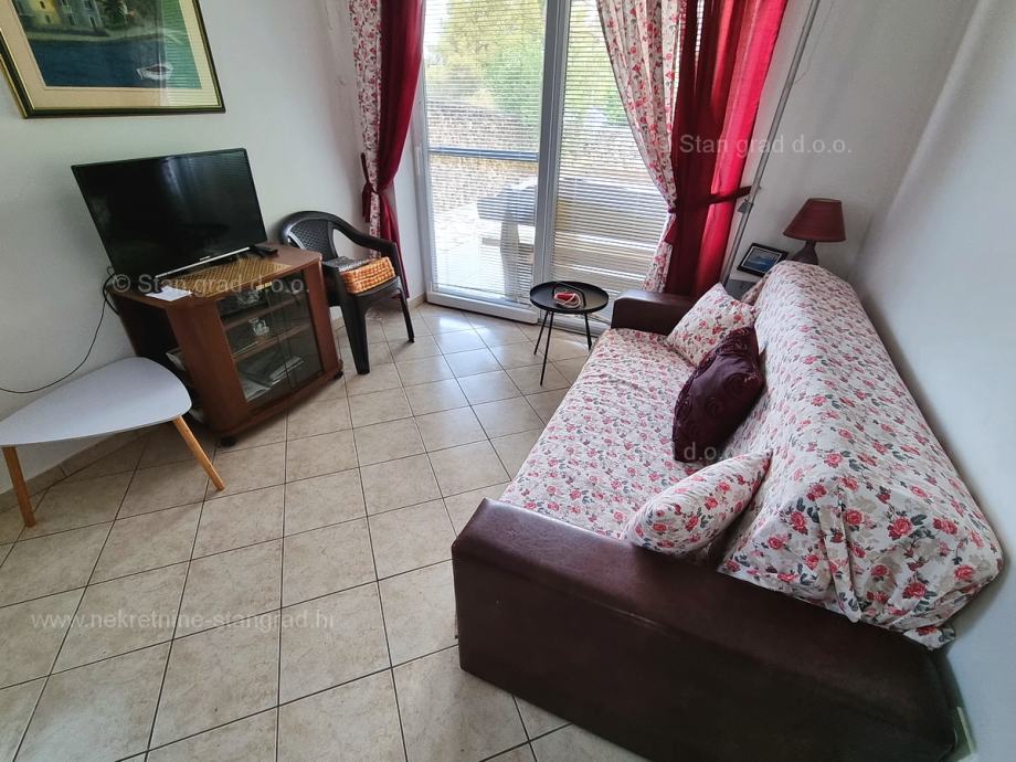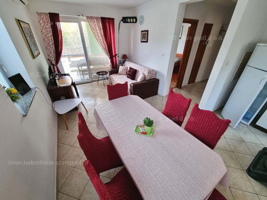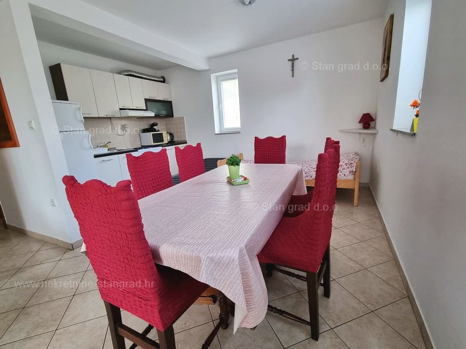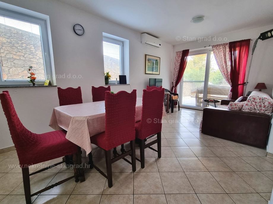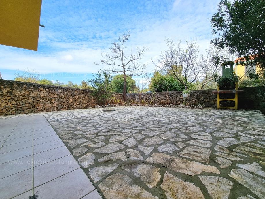 U okviru naše ponude nekretnina na uvijek zanimljivom jadranskom obalnom lokalitetu otoka Krk izdvajamo dobru priliku za akviziciju kvalitetnog apartmana. Ovaj apartman se nalazi na vrlo dobroj lokaciji u uvali Soline, u blizini centra, mora i svih sadržaja nužnih za komforno, ugodno i sigurno ljetovanje. Radi se u naravi o udobnom i srednje velikom jednoetažnom apartmanu dobrog rasporeda prostorija. Unutar građevine dobre kvalitete, apartman se nalazi na prizemnoj etaži. Ukupna površina obuhvaćena ovim apartmanom iznosi 57 m2. Ta površina sadržava dnevni boravak i kuhinja, spavaću sobu, hodnik, kupaonicu i natkrivenu terasu. Nekretnina očuvane unutrašnjosti je opremljena setom vrlo dobre tehničke opreme i kvalitetnim komadima namještaja. Svakako je za napomenuti da vlasništvo opisanog apartmana uz sebe veže i dobro organiziranu okućnicu od 50 m2 s opremljenim grill prostorom. Vlasnik apartmana na raspolaganju će imati jedno parkirno mjesto. Uz sve spomenuto, orijentacija pripadajućih prostora ovog apartmana nudi pogled na lijepo primorsko naselje. Ovaj je apartman vlasništvo fizičke osobe pa je kupac prilikom prijepisa njegovog vlasništva na svoje ime u obvezi plaćanja poreza na promet u visini 3%. Prodavatelj nekretnine jamči urednu građevinsku i vlasničku dokumentaciju te brz prijenos nekretnine na ime kupca. Obratite nam se s povjerenjem na adresi poslovnice na otoku Krku i bit ćemo vaš partner za sigurnu kupnju nekretnine na Kvarneru. Ukoliko se odlučite na kupnju nekretnine kod nas, stručni i srdačni tim naše agencije bit će vam na raspolaganju za sve administrativne radnje oko prijenosa vlasništva nekretnine i pripadajućih računa na svoje ime.