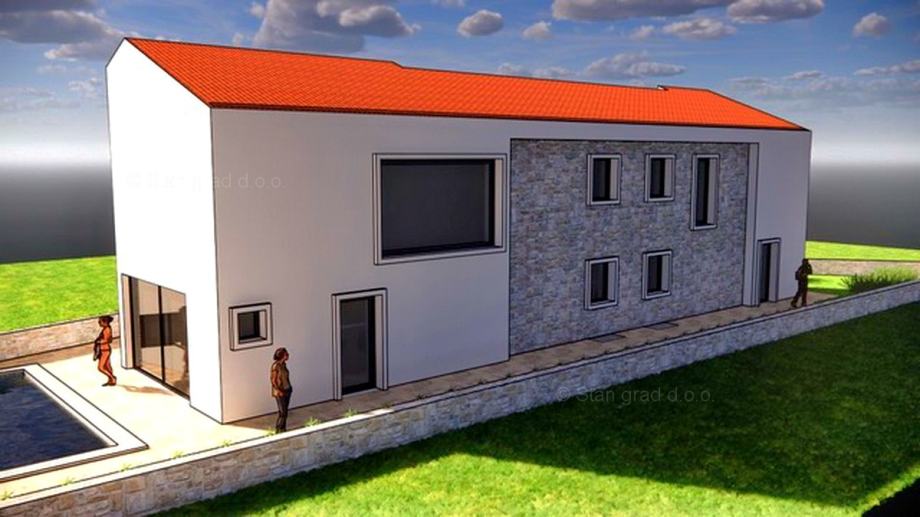Kod agencije Stan Grad Immobilien na Kvarneru je u prodaji iznimna mediteranska urbana kuća građena po modernom projektu na razvijenom i atraktivnom sjevernojadranskom području Otoka Krka. Ova dvojna kuća pozicionirana na mirnoj lokaciji primorskog mjesta Uvala Soline, ne predaleko od mora. Dvojna kuća s bazenom površine 180m2. Sastoji se od prizemlja i kata sa ulaznim hodnikom, dnevnim boravkom, kuhinjom i blagovaonom, 3 spavaće sobe i 3 kupaone. Uz opisanu nekretninu ovaj posjed uključuje dobro organiziranu okućnicu s bazenom. Na dvorištu opisane kuće uređeno je prostrano mjesto za parkiranje. Uz sve navedeno, potrebno je kazati da kuća ima simpatičan pogled na grad i prirodu. Ova nekretnina je u vlasništvu fizičke osobe i na ime njenog prijenosa kupac kuće je u obvezi plaćanja poreza na promet nekretnine u visini 3%. Vlasnik kuće jamči urednu vlasničku i tehničku dokumentaciju te mogućnost brzog prijenosa vlasništva nekretnine na kupca. Posjetite nas na otoku Krku i pobrinut ćemo se da osjetite zadovoljstvo svih naših klijenata. Odlučite li se za nas, agencija Stan Grad Immobilien će vam sa zadovoljstvom pomoći u prijenosu vlasništva nekretnine, kao i računa za struju, vodu i komunalne usluge na svoje ime.