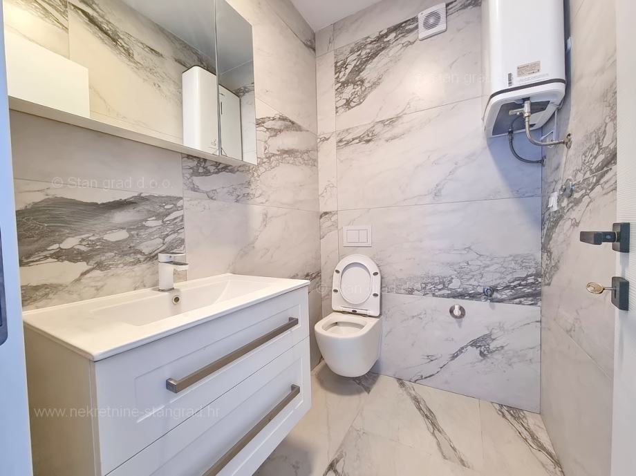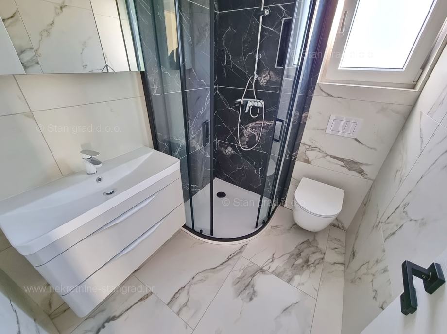 Iz odlične ponude nekretnina u agenciji Stan Grad Immobilien, izdvaja se vrlo lijep apartman u kvalitetnom i poželjnom obalnom jadranskom odredištu otok Krk. Ova nekretnina se nalazi na izvanrednoj lokaciji u Uvali Soline, blizu mora i plaže. Razmatrajući nekretninu prema vrsti, ovo je prostrani jednoetažni apartman. U suvremeno građenom objektu, apartman se nalazi na 1. etaži. Apartman obuhvaća ukupnu površinu od približno 67 m2. U toj su površini obuhvaćeni dnevni boravak i kuhinja, 3 spavaće sobe, 2 kupaonice i terasa. Unutarnji prostor nekretnine je prazan i kompletno slobodan od komada namještaja. Vlasništvo ovog apartmana obuhvaća i mogućnost korištenja zajedničkog dijela dvorišta predmetnog objekta. Vlasnik apartmana na raspolaganju će imati jedno parkirno mjesto. Povrh ranije opisanih svojstava, nekretnina je vrlo dobro orijentirana te pruža primamljiv pogled iz apartmana na more i prirodni krajolik. Ovaj apartman je u sustavu PDV-a te je izuzet od plaćanja poreza na promet nekretnina, što u stvarnosti kupca ove nekretnine oslobađa predmetne porezne obveze. Prodavatelj garantira uredne dokumente i promptan prijenos vlasništva apartmana na kupca. Javite nam se, pobrinut ćemo se da osjećate sigurnost i zadovoljstvo kupnje nekretnine. Poklonite li nam svoje povjerenje, agencija Stan Grad Immobilien rado će vam pomoći u prijenosu vlasničkih prava ove nekretnine te računa za njene komunalne priključke i usluge na vaše ime.