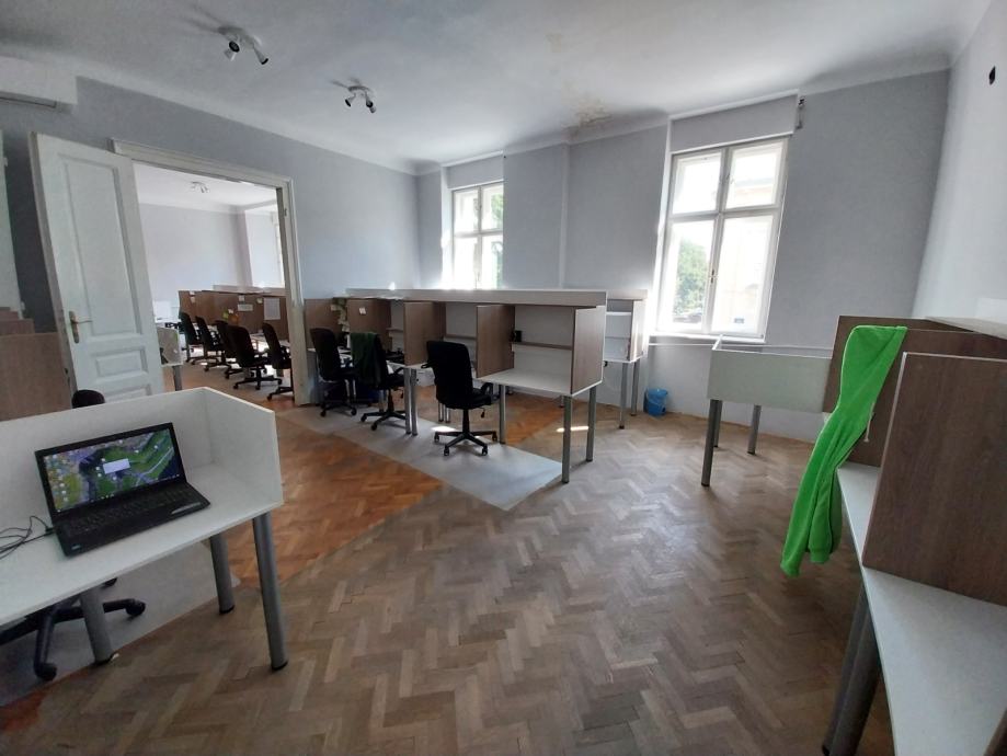Nudimo u zakup uredski poslovni prostor površine 120m2 na prvom katu. Poslovni prostor sastoji se iz tri prostrane prostorije, dva sanitarna čvora, čajne kuhinje i ulaznog prijemnog prostora. Zgrada se nalazi na fekventnoj lokaciji 800 metara od Trga A.Starčevića. Prostor je uredske namjene sa pratećim servisnim prostorima, čajna kuhinja, dva sanitarna čvora. Odmah ispred zgrade nalazi se parking prostor za veliki broj vozila koji je moguće zakupiti od grada Osijeka. Poslovna zgrada je u potpuno funkcionalnom stanju, Prostor je adaptiran u urednom stanju, opremljen informatičkom mrežom, instalacijama telefona. Prostor je kompletno klimatiziran.