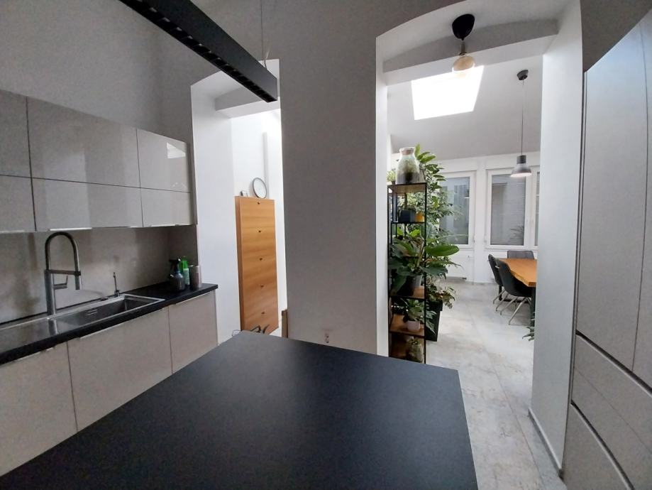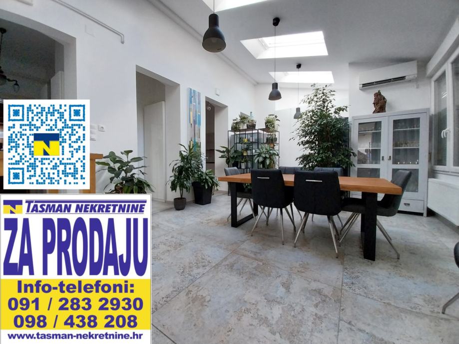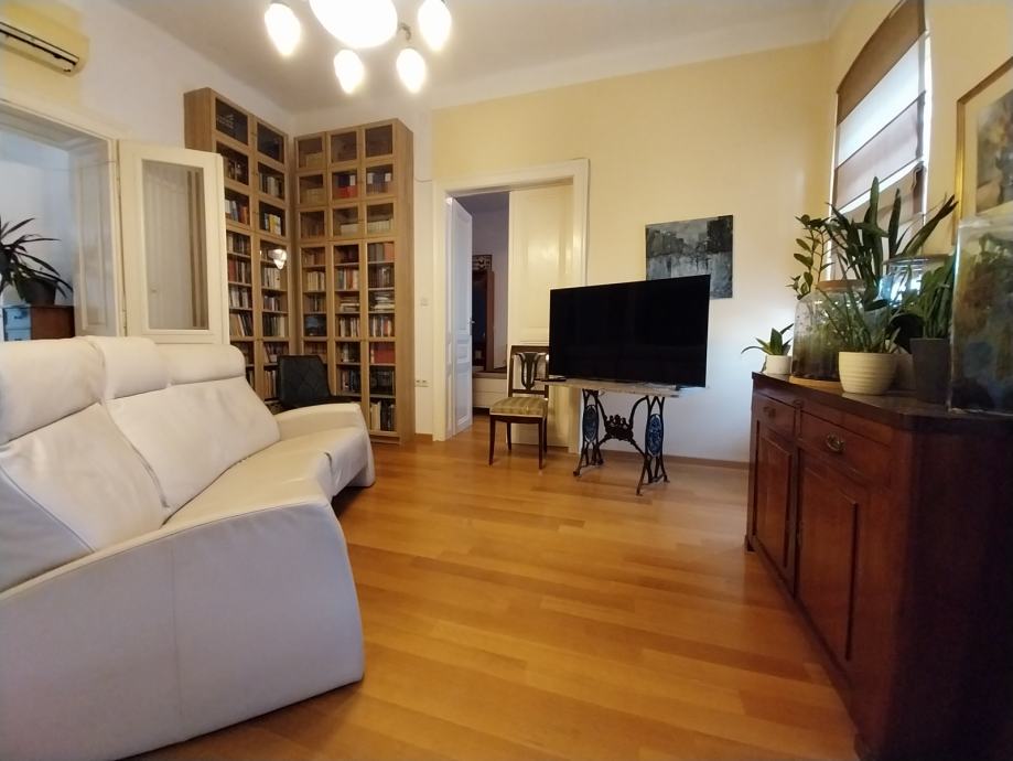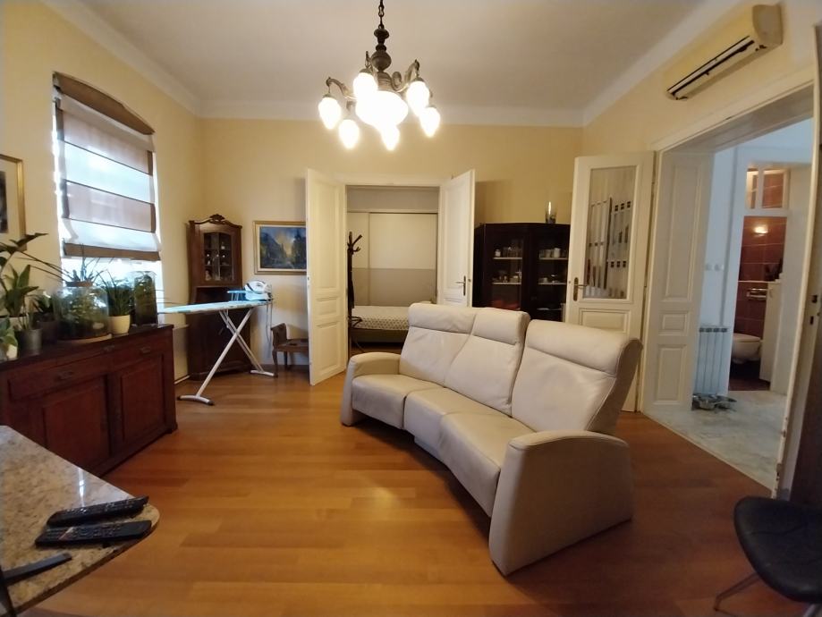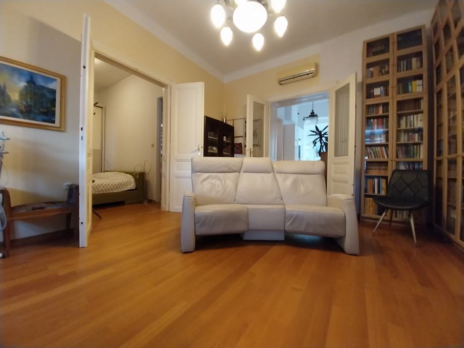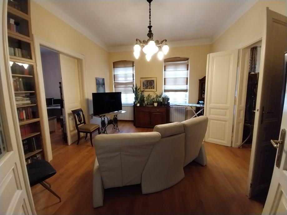 Kompletno adaptiran jednoetažni četverosoban komforan stan na atraktivnoj stambenoj lokaciji, uži centar Osijeka. Stan se nalazi u tvrdo zidanoj stambenoj zgradi u secesijskom stilu. Stan se nalazi na prvom katu stambene zgrade. Stan je kompletno adaptiran. Adaptacija je obuhvatila novu vanjsku pvc stolariju kopletno adaptirane kupaonice, nova keramika, sanitarije, instalacije, te novo centralno plinsko grijanje(novi kombi bojler), novi podovi parket I keramika. Stambena površina stana prostire se na jednoj etaži ukupne površine 120,00m2, a sastoji se iz tri sobe, dnevnog boravka povezanog sa kuhinjom I blagovaonicom, velike kupaonice, malog wc-a i hodnika. Kompletan namještaj u stanu kupac dobiva na poklon.Stan ima pripadajući dio tavana, te je na raspolaganju svim stanarima zajedničko dvorište. Stan ima sva brojila odvojena, telefon, internet, klima uređaj. Grijanje je centralno plinsko kombi bojler/radijatori. Stan se nalazi u neposrednoj blizini Trga Ante Starčevića, promenade i osječkih perivoja.
