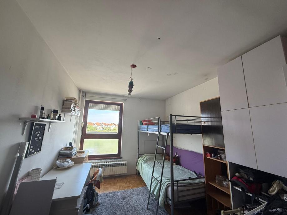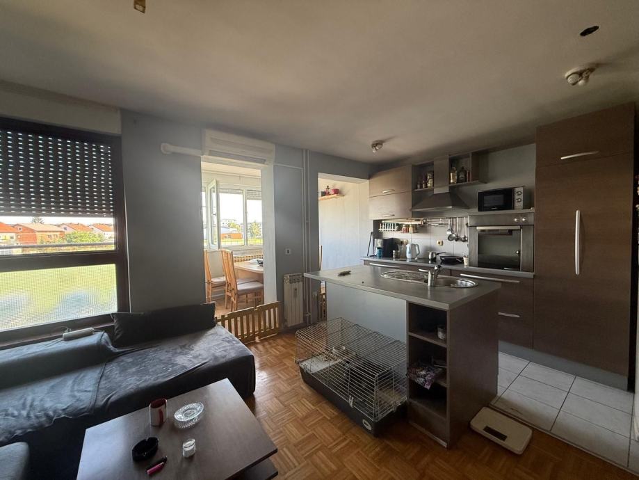 Trosoban stan na prvom katu stambene zgrade, u mirnom dijelu Kromosovog naselja u Velikoj Gorici, u neposrednoj blizini škole, javnog prijevoza, trgovine i dr. Sastoji se od dnevnog boravka s kuhinjom i blagovaonom, dvije spavaće sobe, ostave, kupaonice i spremišta u podrumu.
