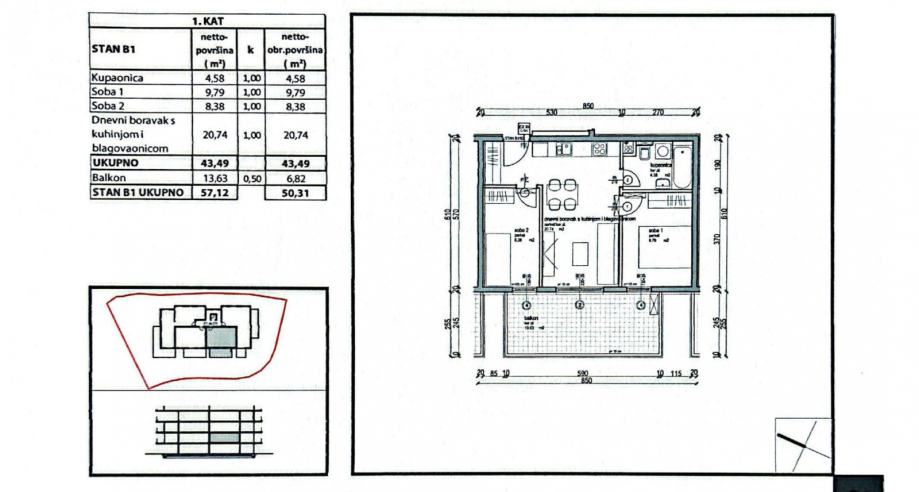 • Dnevni boravak s kuhinjom i blagovaonicom: 20,74 m²