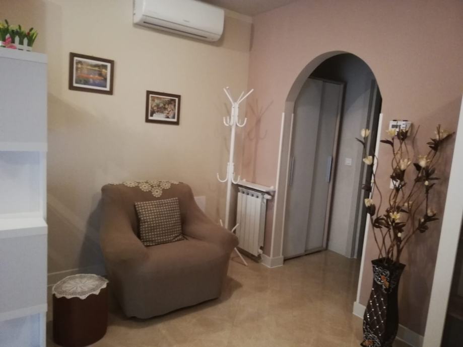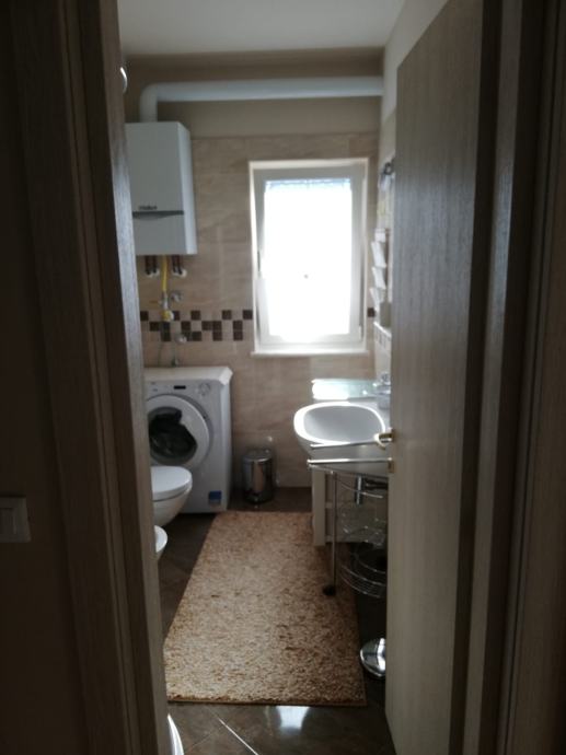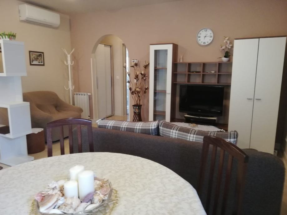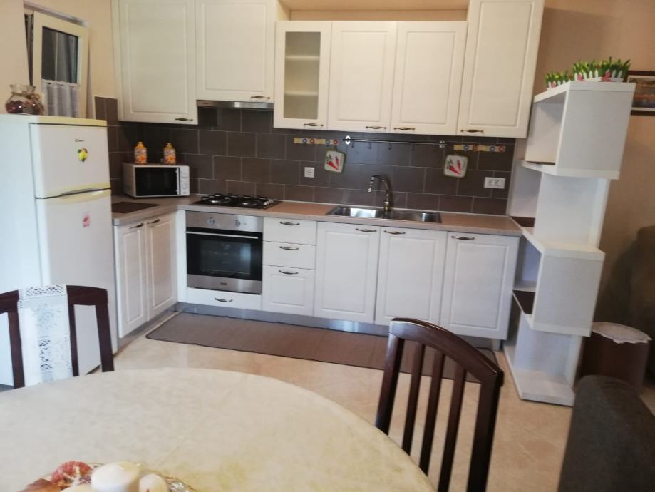Iznajmljuje se dugoročno novo potpuno namješten dvosoban stan 55m2 prizemlje sa vanjskom nadkrivenom terasom u novoj kući. Raspolaže dva natkrivena parkirna mjesta.Centralno grijanje na radijatore. Klima uređaj grijanje i hlađenje. Tv sat. Video parlafon. Stan se sastoji od posebnog ulaza, kuhinje sa velikim dnevnim boravkom sa trosjedom na razvlačenje, hodnik, kupaona sa veš mašinom, bračna spavaća soba. Kuća je dobro izolirana, prozori sve novo. €650 mjesečno plus režije potrošnje. Ugovor minimum na godinu dana mogućnost obnove. Iznajmljuje se tokom cijele godine. Stan je dostupan odmah. Najmoprimac ne plaća agencijsku proviziju, samo dvomjesečni polog pri ulasku. Kućni ljubimci nisu dozvoljeni. Nalazi se na mirnoj lokaciji nedaleko od mora Santa Marina.