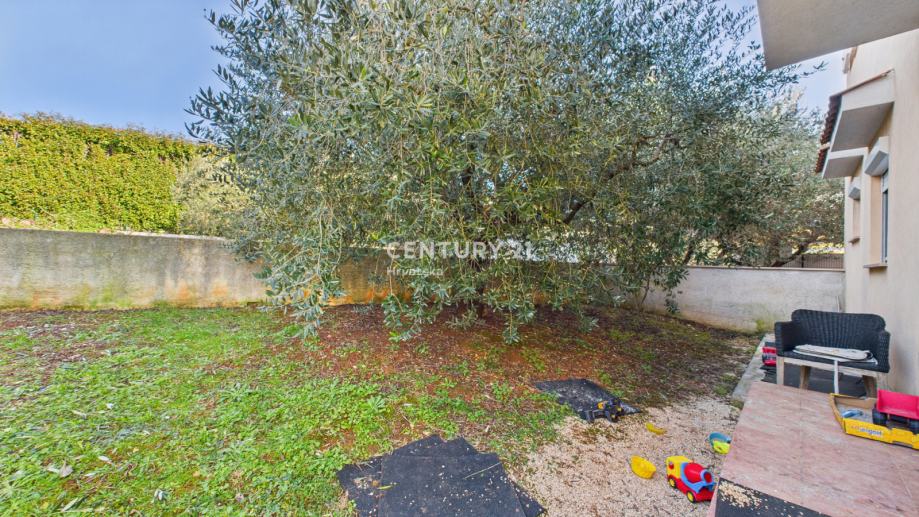 U vlasništvu stana još se nalazi natkriveno, jedno parkirno mjesto i dio dvorišta od 32 m2 iza kuće na kome su posađene masline.