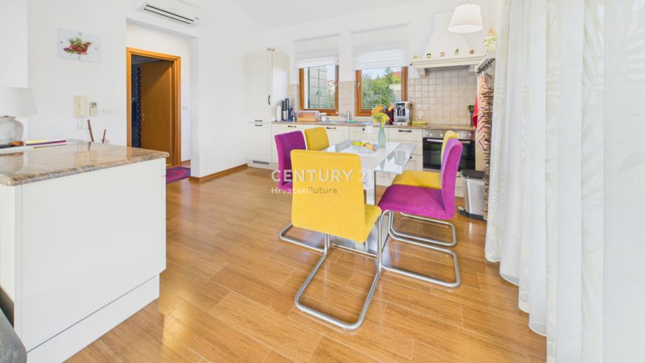 U rezidencijalnom dijelu, okružen vilama i s predivnim pogledom na more i samo 1500 m od prvih plaža i marine, prodaje se stan od 113 m2. Lokacija je odlična za turizam ili odmor zbog blizine predivnih plaža ali i život jer je u blizini svih ostalih sadržaja.