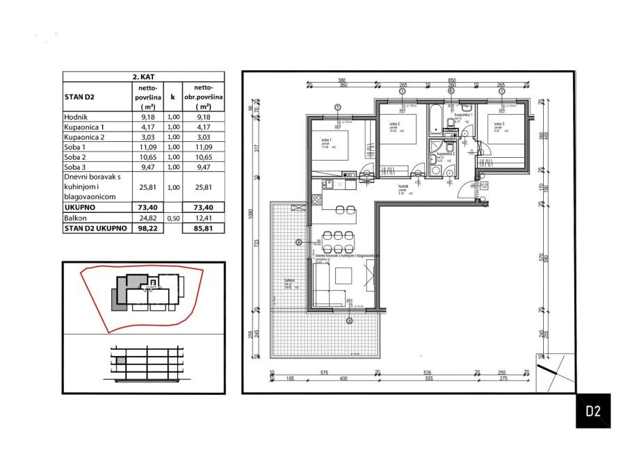 Prodajem stan na 2 katu zgrade sa liftom.Stan se sastoji od hodnika, tri spavaće sobe,dvije kupaone, terase, spremišta i parkirnog mjesta. Kupac ne plaća porez na promet nekretnina.