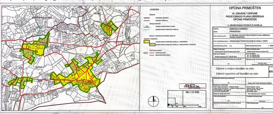 Das Baugrundstück befindet sich in der ruhigen autochthonen dalmatinischen Stadt Vadalj im Hinterland von Primošten (Primošten Južni) auf einer Höhe von 242 m. Das Grundstück hat eine Fläche von 1645 m2 und ist rechteckig mit Abmessungen von 27 m. x 61 m. Auf dem Grundstück stehen 20 Olivenbäume. Lokaler Name des Landes – „Grbetina“, geografische Lage – 43°34'27"N 15°59'22"E.