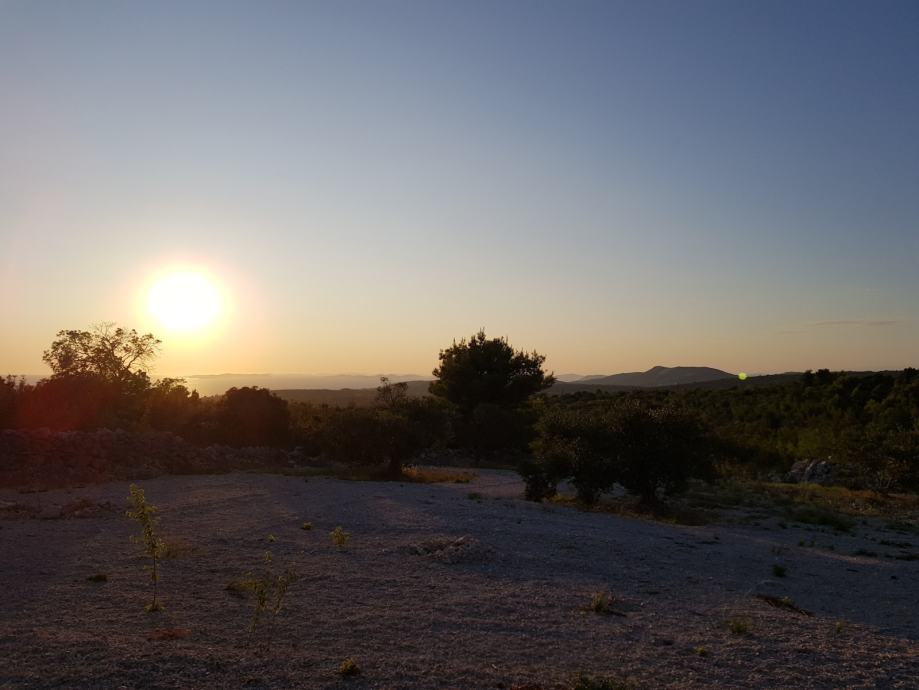 The building land is located in the quiet autochthonous Dalmatian town of Vadalj in the hinterland of Primošten, at an altitude of 242 m above sea level. According to the 2011 census, there were 93 inhabitants living in Vadalj who are mainly engaged in agriculture (cultivation of olives, figs, vines etc.). The land has an area of 1645 m2 and is rectangular with dimensions of 27 m. x 61 m. There are also 20 olive trees on the land. Local name of the land - "Grbetina", geographical position - 43°34'27"N 15°59'22"E.