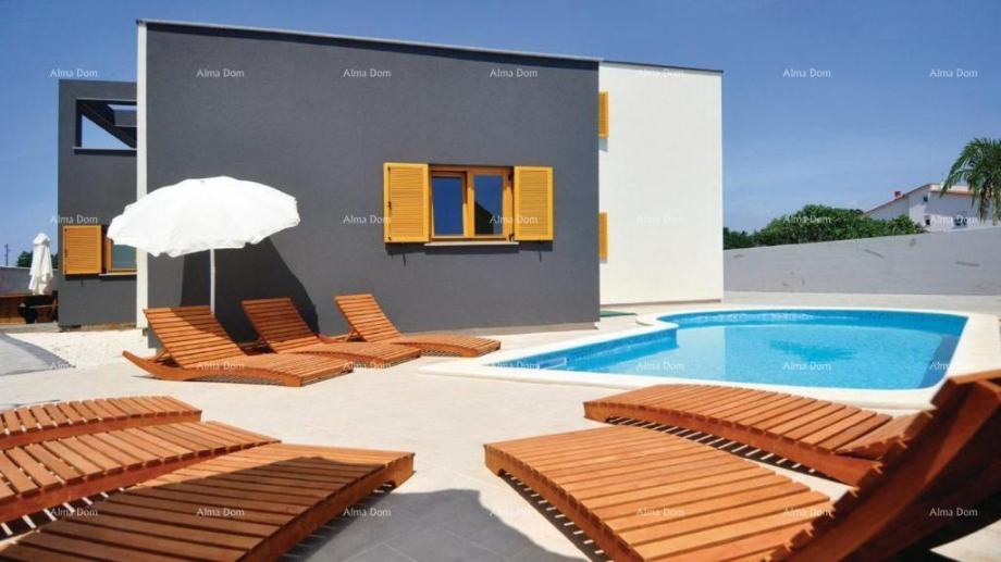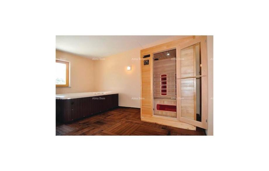 Nalazi se kuća sa bazenom i wellnessom.