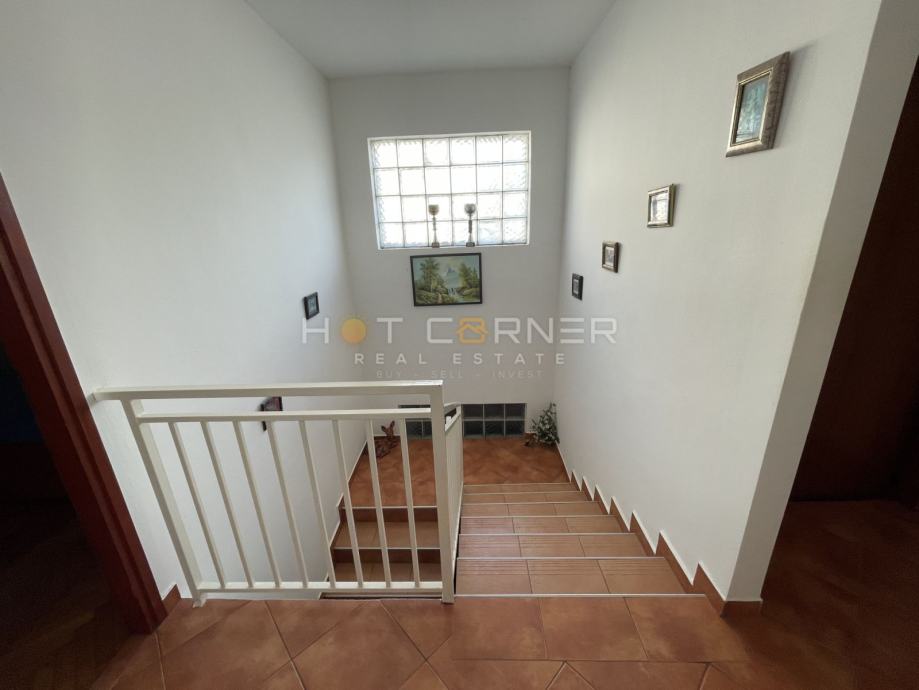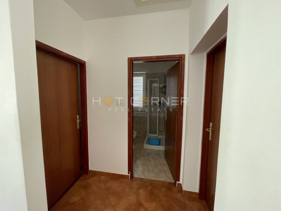 Unutarnje dvorište površine oko 200 m² uređeno je kao travnjak i pruža izvrsnu mogućnost izgradnje bazena sa sunčalištem, dok se ispred kuće nalazi vrt odnosno travnjak površine oko 100 m². Na kući je krov u potpunosti obnovljen prije deset godina, ugrađena je demit fasada te vanjska PVC stolarija, a prema potrebi moguća je manja prilagodba keramičkih pločica. Nekretnina predstavlja odličnu priliku za investiciju zahvaljujući dodatnim apartmanima i atraktivnoj lokaciji u blizini mora, idealnoj za turistički najam ili kombinaciju stanovanja i iznajmljivanja.