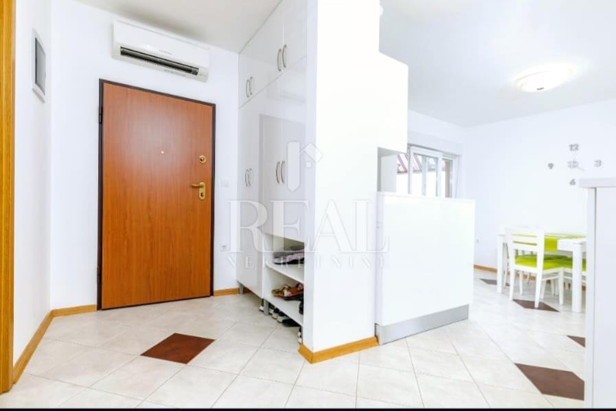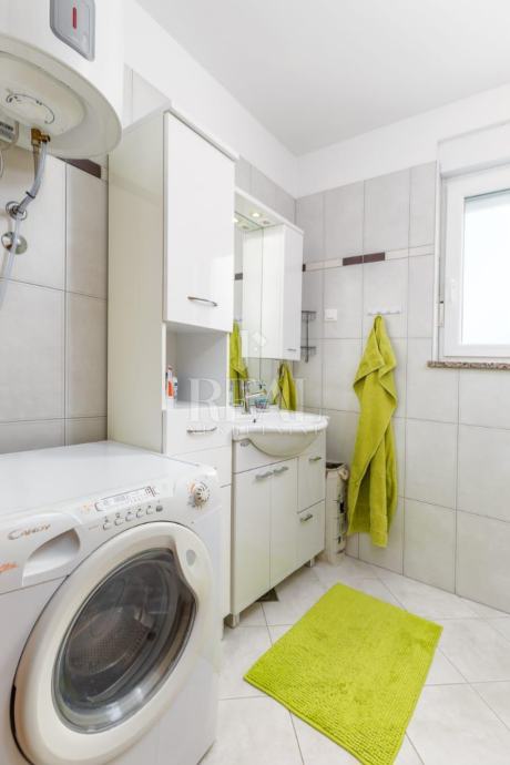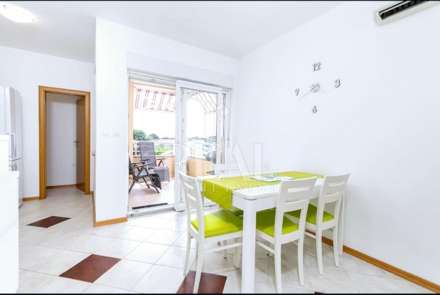 Ima jako dobar tlocrtni raspored open-space kuhinju sa dnevnim dijelom te izlazom na terasu, dvije spavaće sobe,kupaonicu,spremište te pripadajuće parkirno mjesto ispred zgrade.Prodaje se kompletno namješten.Udaljenost od plaže za kupanje je svega 600m.