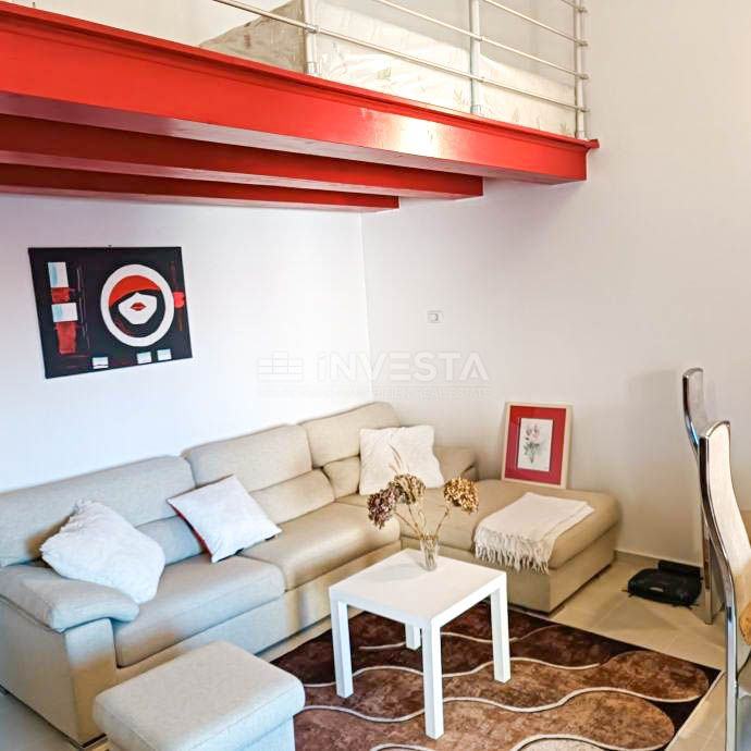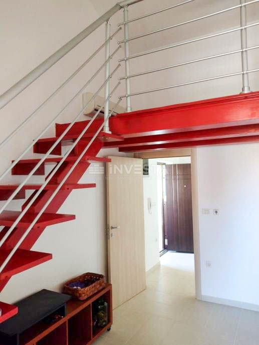 Raspored: predsoblje, spavaća soba, kupaonica, prostrani dnevni boravak s kuhinjom i blagovaonicom, lođa, galerija