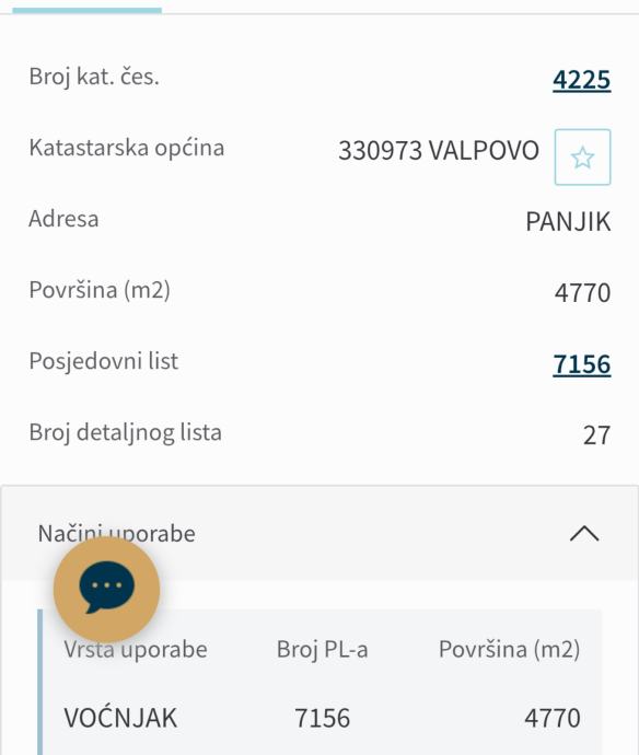 S jedne strane zemljišta se nalazi dio plantaže oraha 10kom, a s druge strane je livada.
