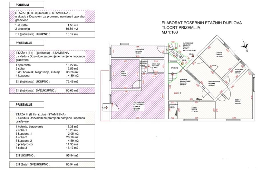 PROSTORIJE NEKRETNINE: vidjeti priloženi tlocrt (označeno ljubičastom bojom)