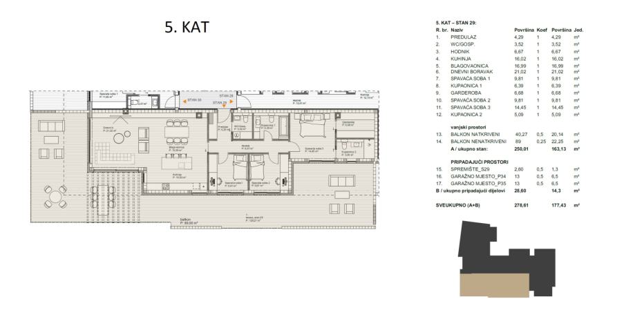 - uz stan se prema potrebi može kupiti jedno ili dva parkirna mjesta u podzemnoj garaži,