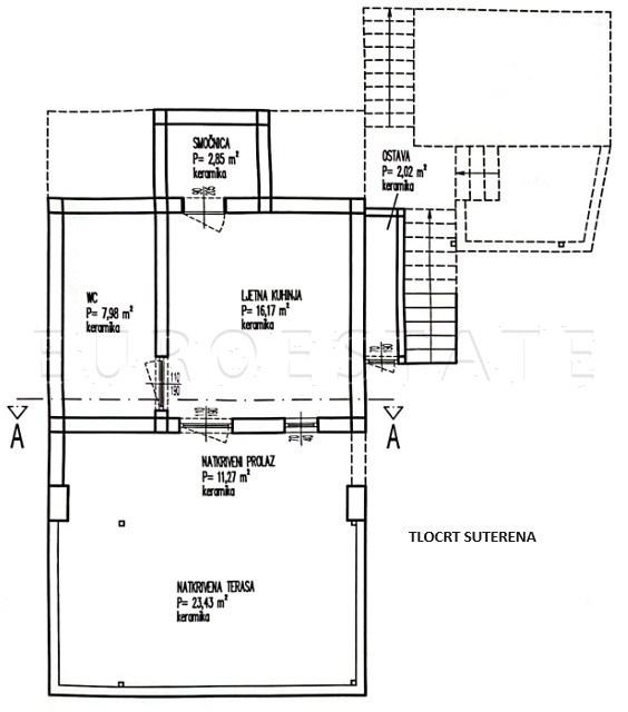 SUTEREN: ljetna kuhinja, kupaona, smočnica, natkriveni prolaz, natkrivena terasa, ostava