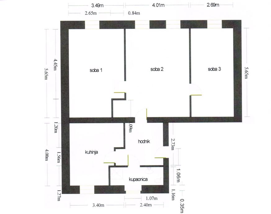 PROSTORIJE: hodnik, kupaona s wc-om, kuhinja, 3 sobe