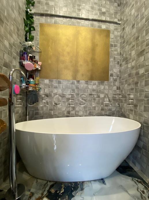 - ulazni prostor, WC, kupaonica sa tuš kabinom i WC-om, kupaonica s kadom, balkon okrenut na dvorišnu stranu, kuhinja i blagovaonica, 4 spavaće sobe