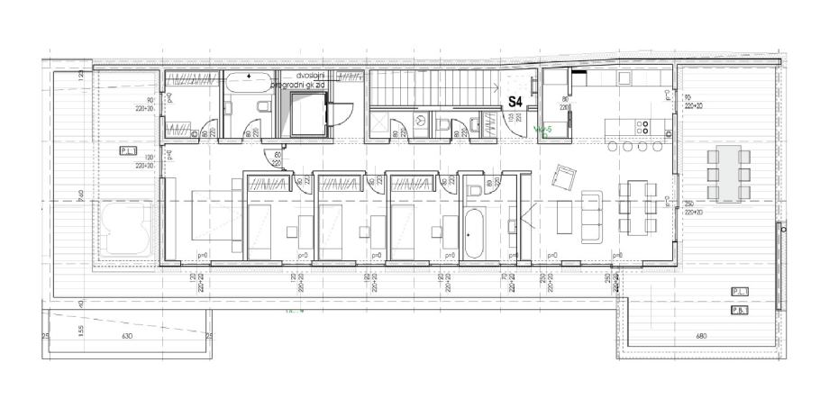 - stan oznake S4 smješten je na 2. katu zgrade sa ukupno 4 stambene jedinice i 1 poslovnim prostorom,