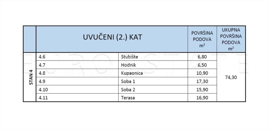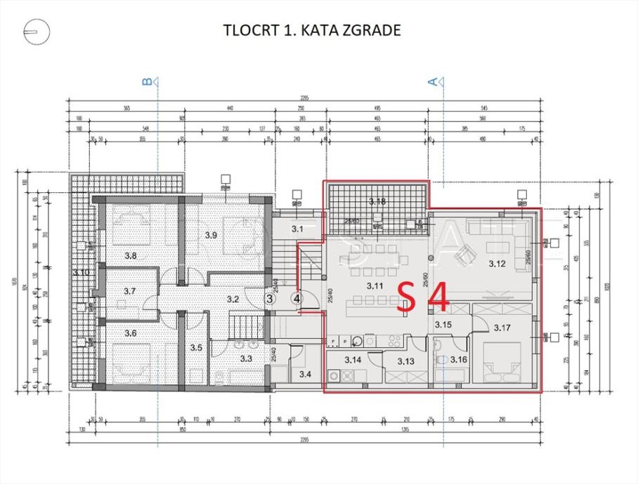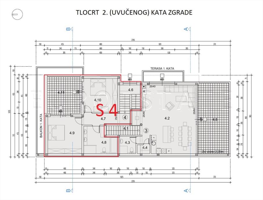 PROSTORIJE STANA: vidjeti priložene tlocrte i popis prostorija (STAN 4)