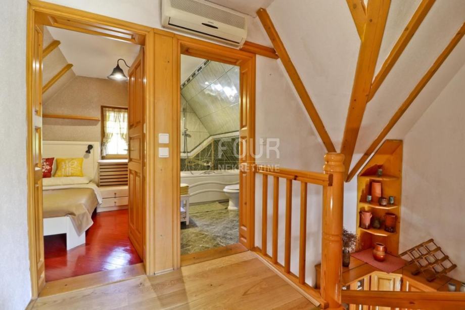 U suterenu se nalazi prostorija sa saunom i jacuzziem, prostorija za druženje - vinski podrum, alatnica i velika terasa.