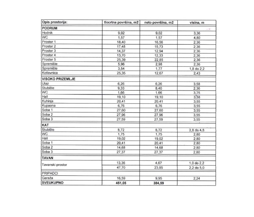 PROSTORIJE KUĆE: vidjeti priloženi popis prostorija sa površinama