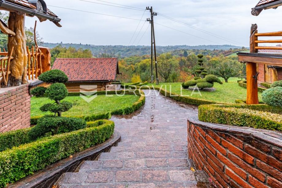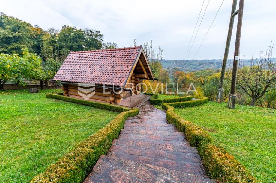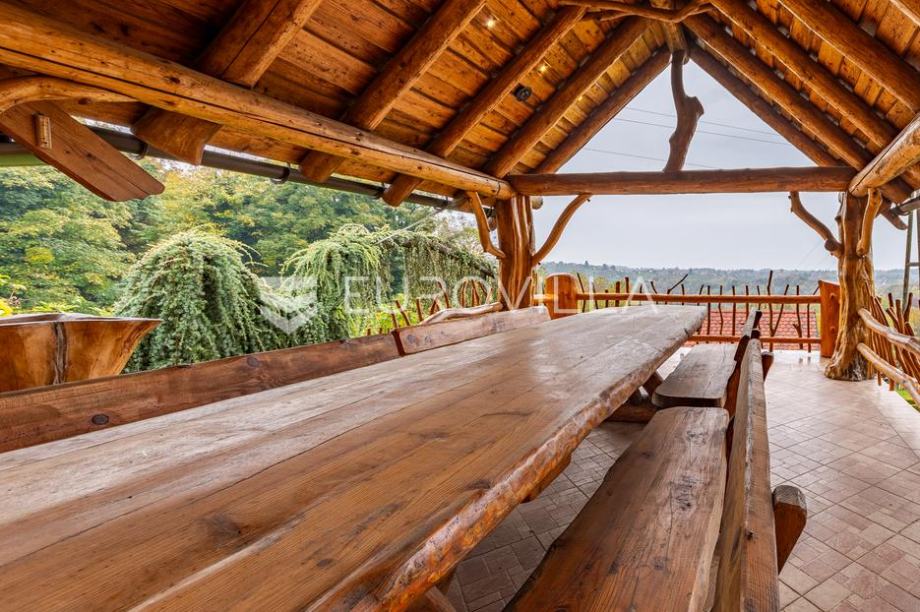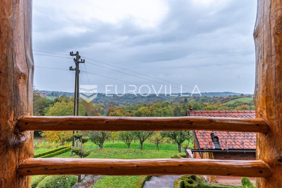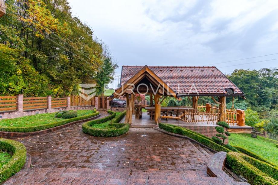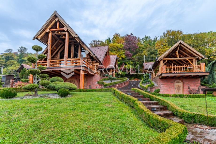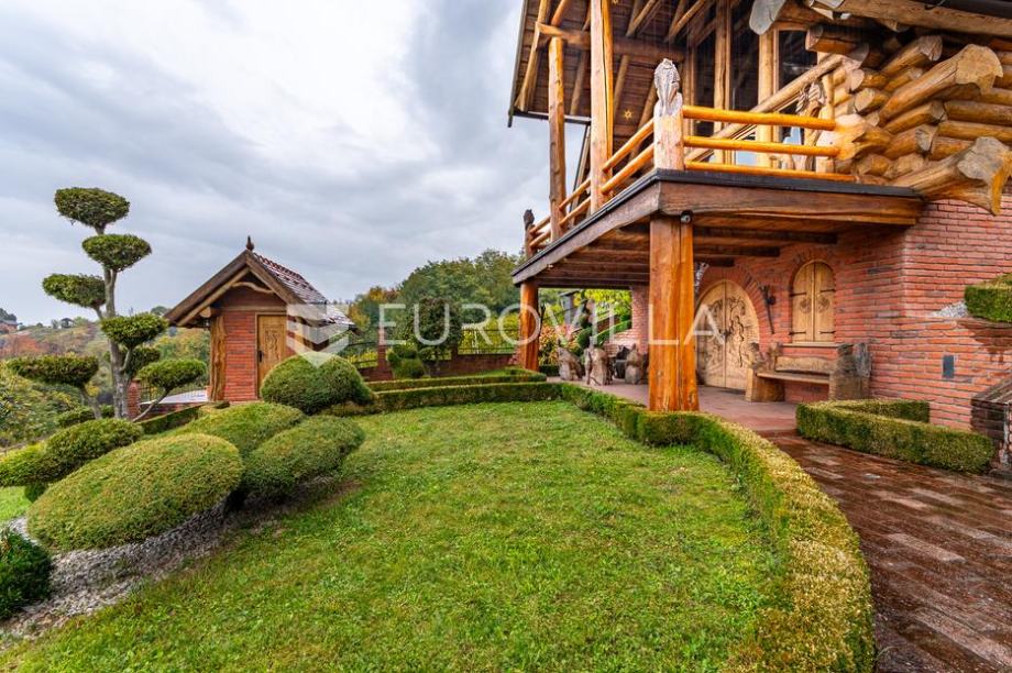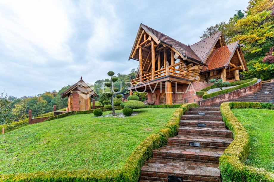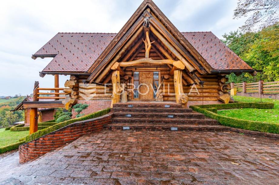 Varaždinske Toplice, Martinkovec, a luxurious estate ready to move in.The wooden house, with a total area of 190 m², consists of a ground floor and a gallery accessible by a lift. The entrance area includes a dining room, kitchen, bathroom, and a living room with access to the terrace. On the...