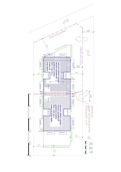 Parcela je pravokutnog oblika i ima svu infrastrukturu do zemljišta.