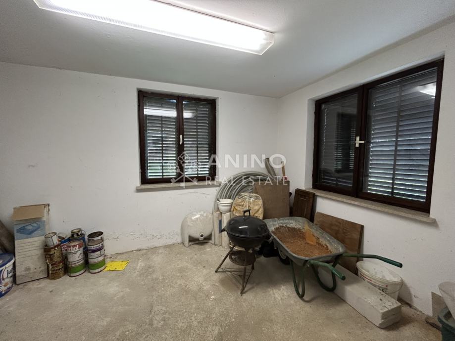 Prizemlje (djelomično ukopano, trenutno neuređeno): tri prostorije + WC, s mogućnošću preuređenja u dodatni stambeni ili poslovni prostor.