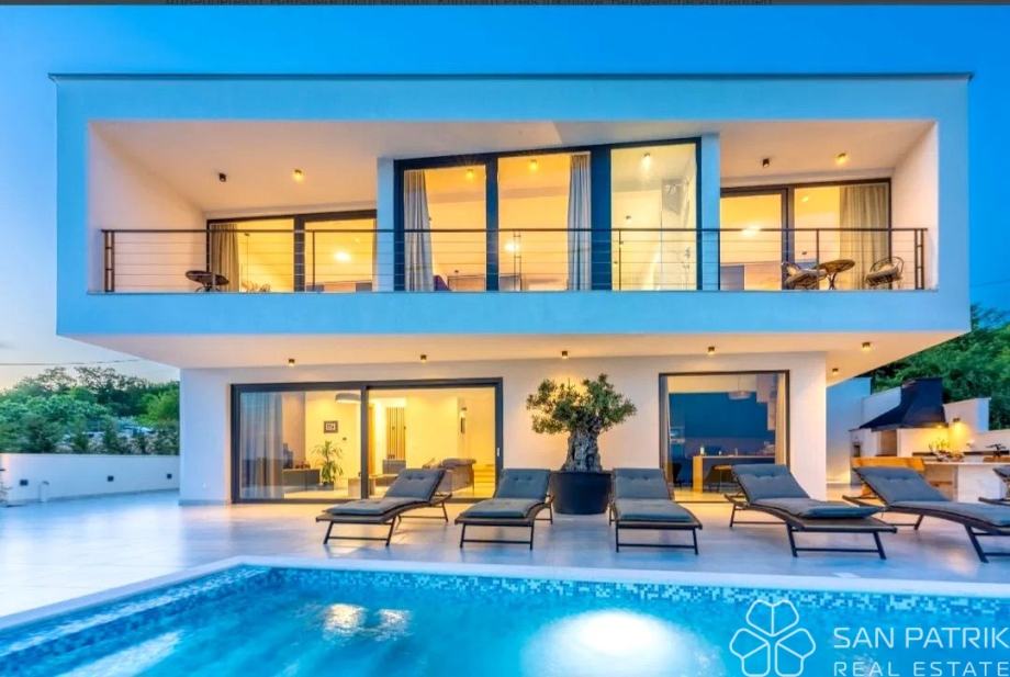 Smještena na parceli od 400 m2, vila nudi bazen s panoramskim pogledom od 180 stupnjeva na more, otok Krk i kvarnerski zaljev. Osigurano je 6 parkirnih mjesta, što dodatno podiže funkcionalnost ove luksuzne nekretnine.