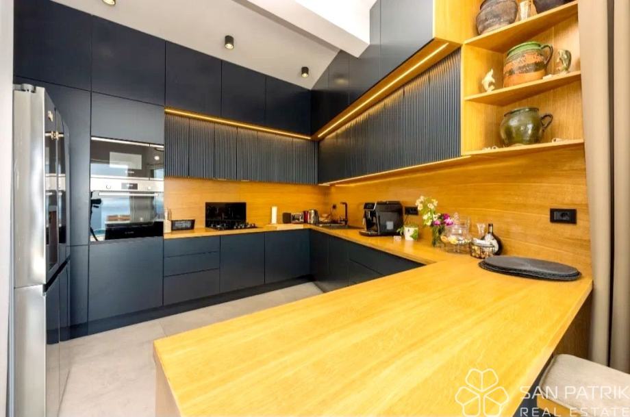 Vila površine 200 m2 izgrađena je prema najvišim standardima, s naglaskom na otvorenost prostora i povezanost s prirodom. Prostrani dnevni boravak, blagovaonica i kuhinja potpuno su povezani s terasom, sunčalištem i bazenom, čime se stvara savršeni ambijent za uživanje u mediteranskom načinu života. Vanjski prostor upotpunjuje roštilj zona, idealna za opuštanje i druženja s obitelji i prijateljima.