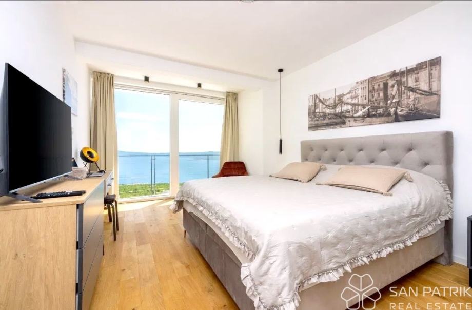 Na katu se nalaze tri prostrane spavaće sobe, svaka s vlastitom kupaonicom i WC-om, pružajući maksimalnu privatnost i udobnost. Sobe su dizajnirane tako da pružaju prirodno osvjetljenje i prekrasan pogled na more, stvarajući opuštajuću atmosferu.