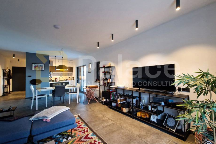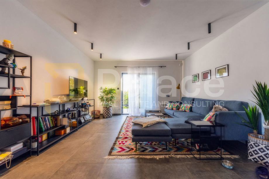 Prizemlje nudi prostran i otvoren koncept koji spaja dnevni boravak, blagovaonicu i moderno opremljenu kuhinju. Iz prostora se pruža izravan izlaz na dvije terase, od kojih jedna vodi prema očaravajućoj okućnici. U prizemlju se nalazi i jedna elegantna spavaća soba s vlastitom kupaonicom, te dodatan wc.