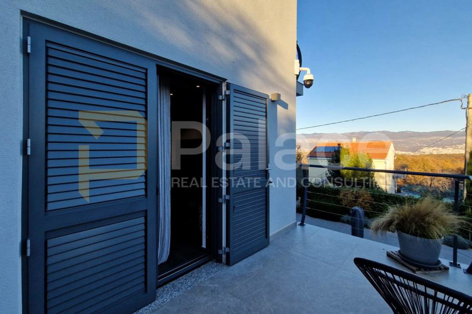 Vila je opremljena vrhunskim uređajima i dolazi potpuno namještena s pomno odabranim komadima namještaja, što budućim vlasnicima omogućuje trenutno useljenje bez dodatnih ulaganja. Sve su kupaonice opremljene podnim grijanjem, osiguravajući maksimalnu ugodu tijekom cijele godine. Energetska učinkovitost osigurana je solarnim panelima koji griju vodu, dok napredni sigurnosni sustav i punjač za električne automobile pružaju dodatnu razinu praktičnosti i sigurnosti. Ispred kuće nalazi se i natkriveni parking za dva automobila. Ovi elementi čine vilu modernim i ekološki osviještenim domom, prilagođenim suvremenom načinu života.