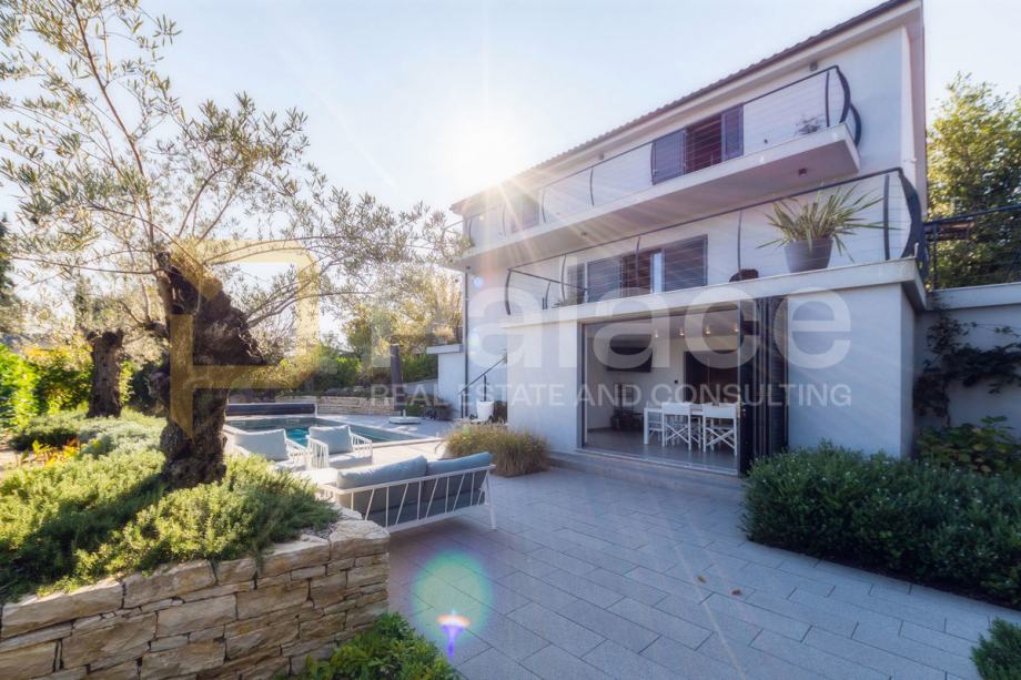Ova luksuzna vila smještena je na atraktivnoj lokaciji na otoku Krku, u neposrednoj blizini svih važnih sadržaja, plaža i kulturnih znamenitosti, ali istovremeno pruža potpunu privatnost i mir.