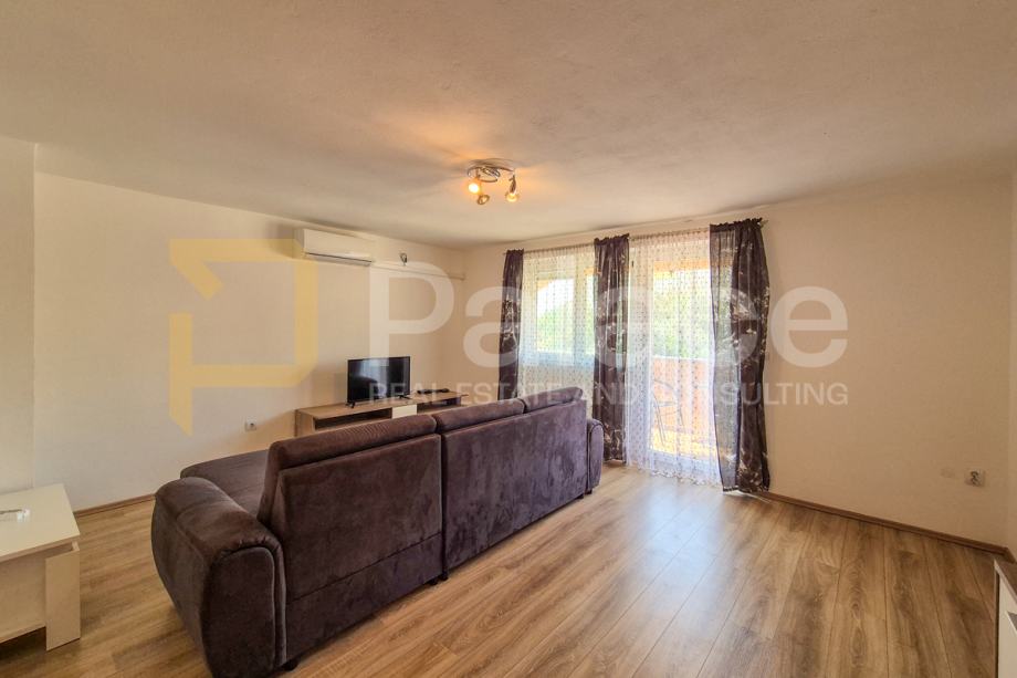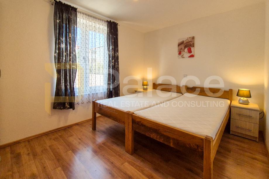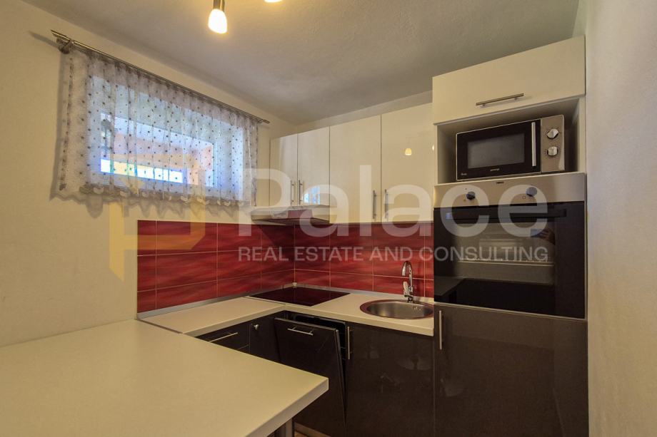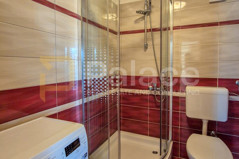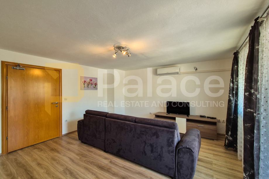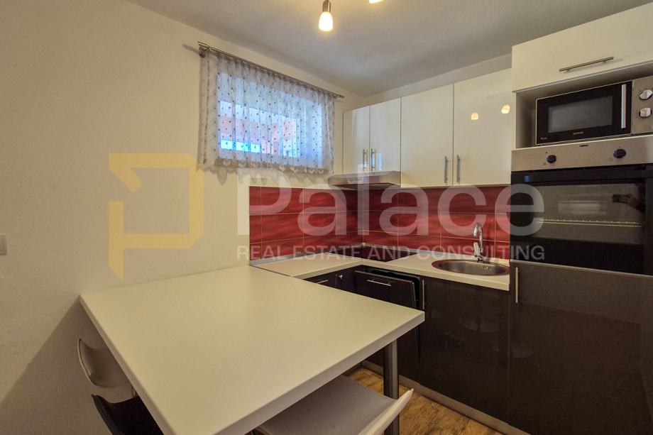 Ekskluzivno u ponudi Palace agencije, jednosobni stan od 47,6 m² koji se smjestio na prvom katu u mirnoj i ugodnoj ulici, a pruža vam sve što vam je potrebno za udoban život. Potpuno je namješten, a kuhinja je rađena po mjeri i opremljena modernim uređajima, uključujući perilicu za posuđe. Stan se sastoji od prostranog dnevnog boravka, iz kojeg se izlazi na terasu i udobne sobe s krevetima od punog drva te elegantna kupaonica.