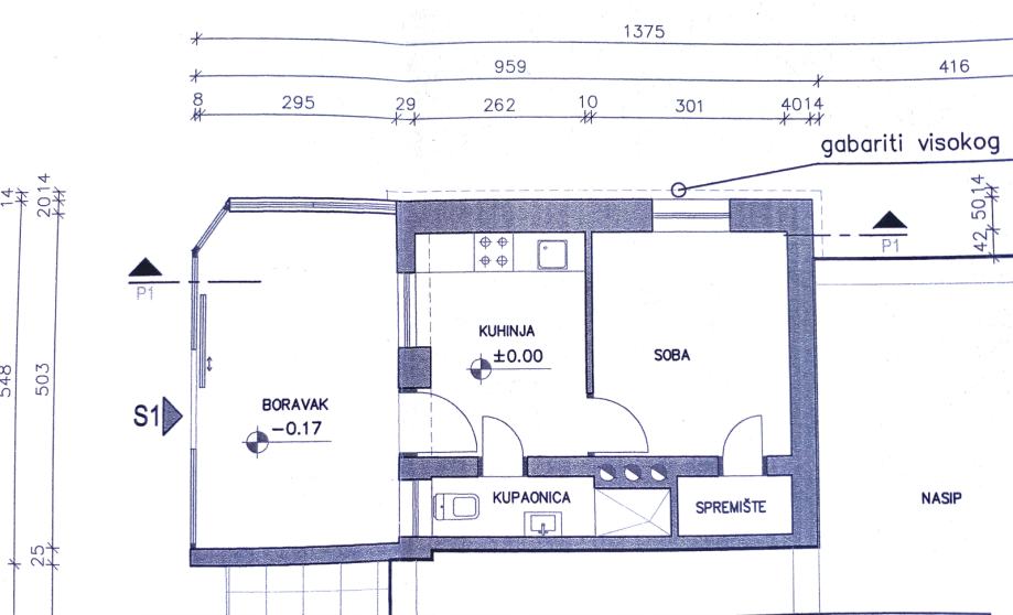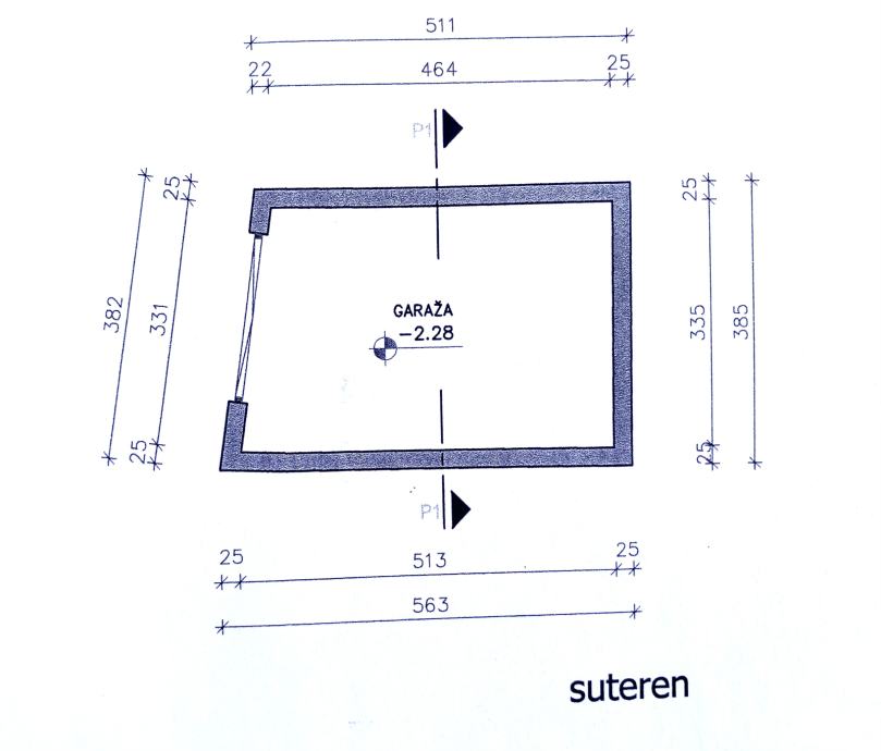 U suterenu, s pristupom iz donje ulice, nalazi se garažni prostor od 21 m².