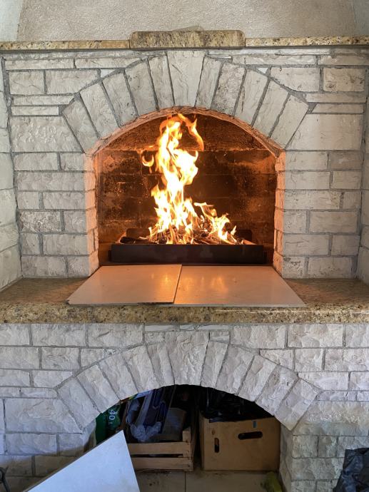 Stan je natkrivenim prolazima povezan s ljetnom kuhinjom – pravom konobom s pomičnom staklenom stijenom prema jugu. Kuhinja izlazi na natkrivenu terasu s kaminom/roštiljem. Ovdje se dani provode u hladu kivija, a zimi terasa postaje sunčalište za dušu – južna orijentacija i zaklon od bure čine je idealnim zimskim kutkom.