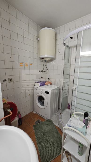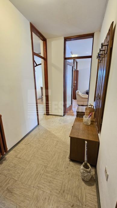 Stan je zagrijavan centralnim grijanjem putem gradske toplane - ugrađeni razdjelnici, plaćanje po potrošnji. Obzirom da je dužni niz godina bio u najmu, potrebna mu je unutarnja modernizacija i adaptacija. Podne obloge od lamel parketa u korektnom stanju koji uz manje popravke i lakiranje može i dalje ostati. Ostatak stana u kombinaciji starijih keramičkih i vinas pločica. Vanjska stolarija od starije no solidne aluminijske stolarije s izostaklima, unutarnja i ulazna vrata od punog drveta. Stan je djelomično namješten, a ostanak namještaja je po dogovoru.