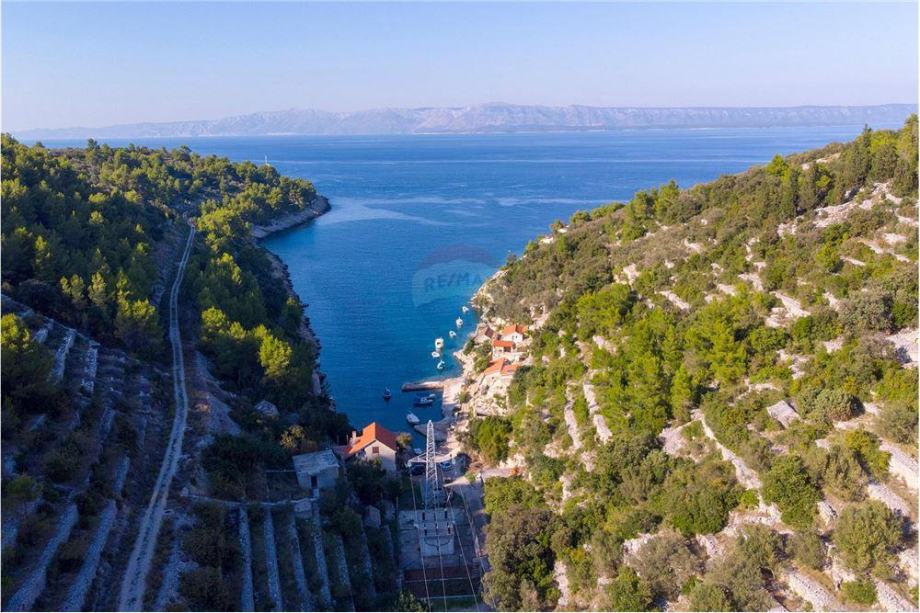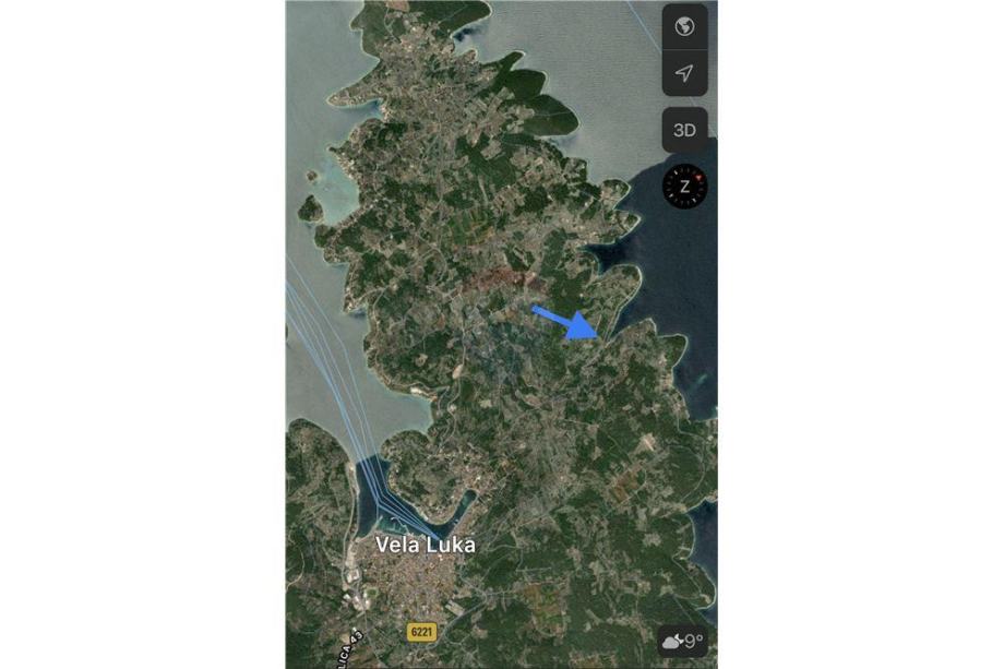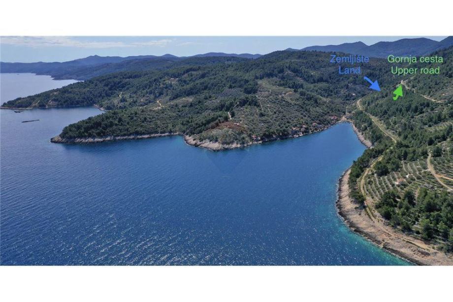 On the island of Korčula, just a few km from Vela Luka, in Prapatna bay, a rectangular building plot with a panoramic view of the sea archipelago is for sale.