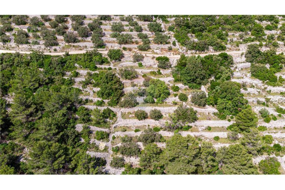 Površine je 2602m², ima 20ak maslina, i oko 10 redova koji su ograđeni suhozidom. Zemljište je na brdu pa praktički stoji pod koso, tj. ide niz brdo.