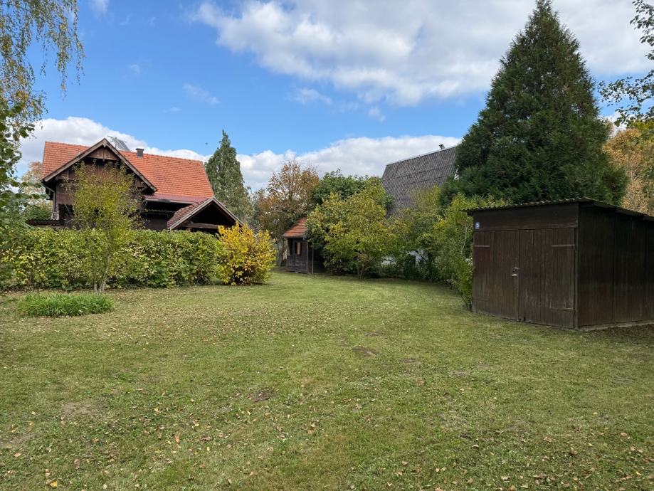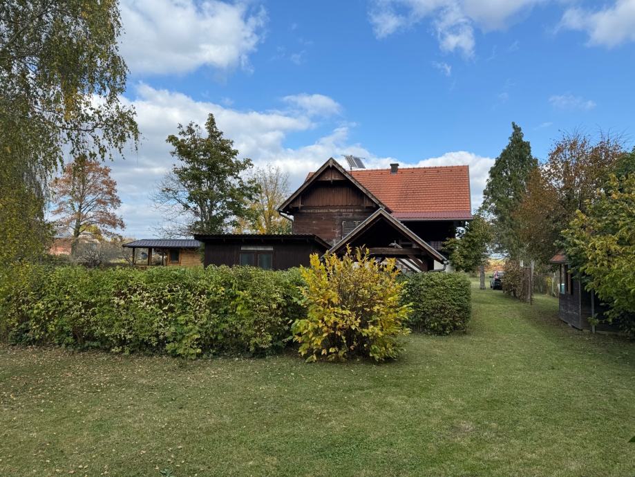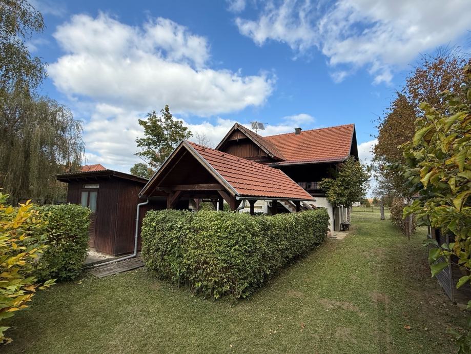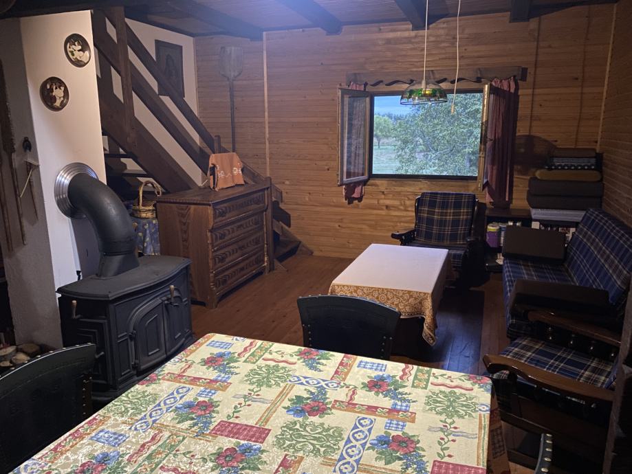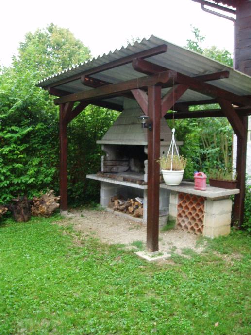 Prodajemo prekrasnu drvenu kuću za odmor (105 m2) koja se nalazi 45 minuta vožnje automobilom od Zagreba, malu kućicu za odmor (12 m2), garažu (13 m2) i dječju kućicu (4 m2) na zemljištu veličine 1345m2. Kuća je sastavljena 1982. godine na trenutnoj lokaciji i podignuta je na betonske stupove visine 2 m. Ispod kuće nalazi se zatvorena radiona veličine 40-ak kvadrata. Kuća ima pristup vodi, na krovu postoji solarni sustav te je kuća je samoodrživa. Sastoji se od 4 spavaće sobe, kuhinje, dnevnog boravka, blagovaone i kupaone. Ispred kuće se nalazi natkriveni roštilj i natkriveni hrastov stol za 20-ak osoba. Nalazi se u blizini rijeke.