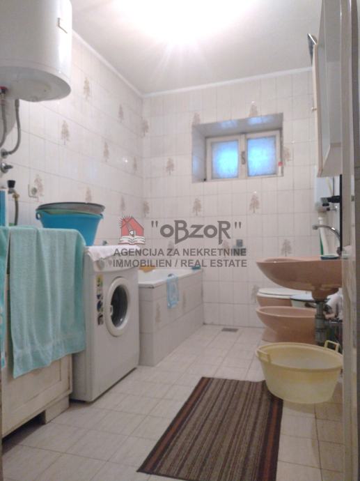 U prizemlju se nalazi kuhinja s blagavaonom, dnevni boravak, hodnik, ostava i kupatilo s toaletom .