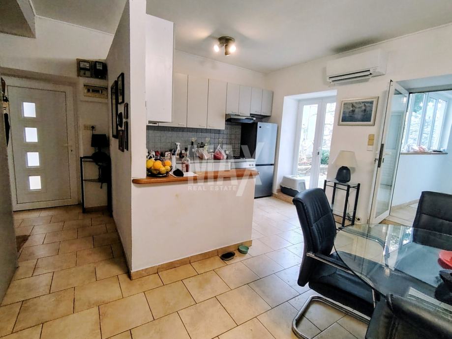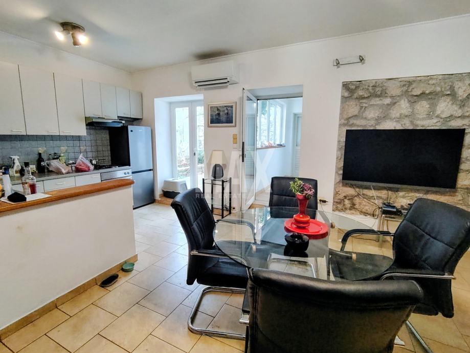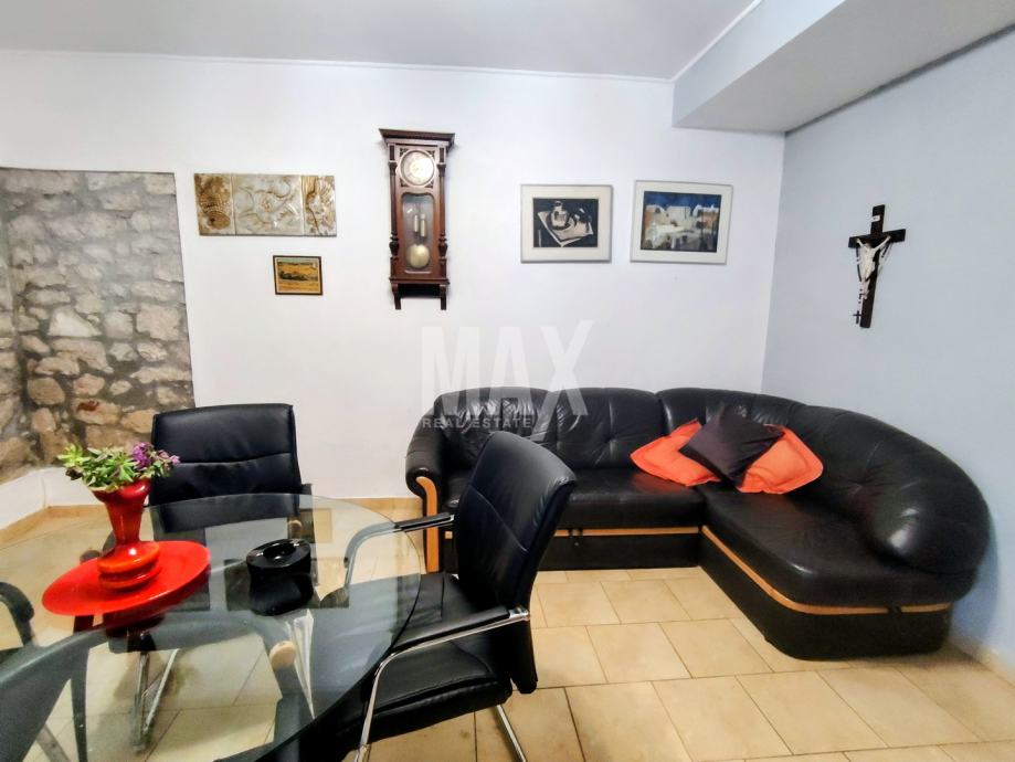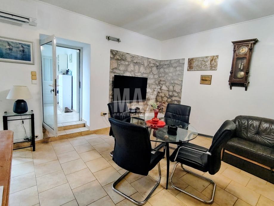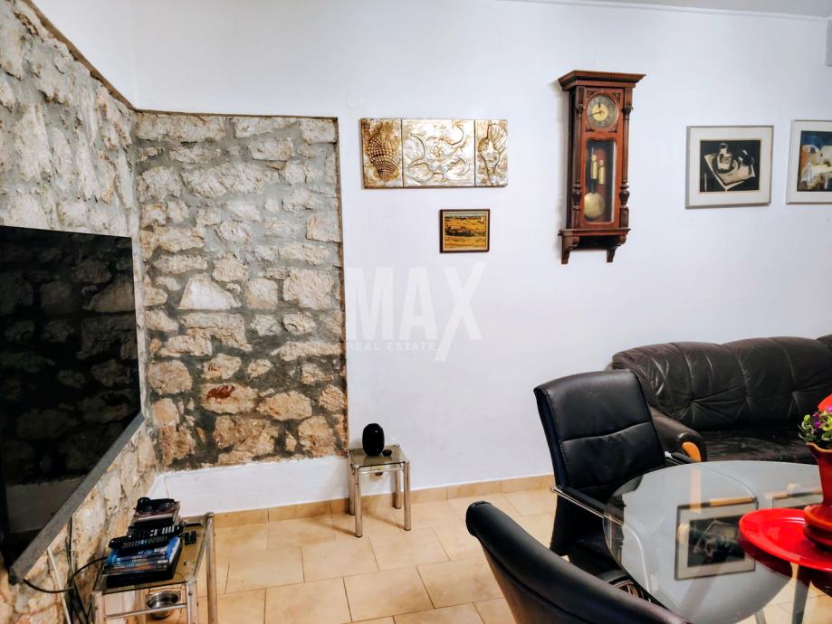 Prodaje se trosoban,namješten stan u prizemlju kuće.Sastoji se od 2 hodnika,ostave,kupaonice,tri spavaće sobe,te dnevnog boravka s kuhinjom i blagovaonom iz koje se izlazi u vrt koji je zaklonjen od vjetra,pa se u njemu može boraviti tokom cijele godine.