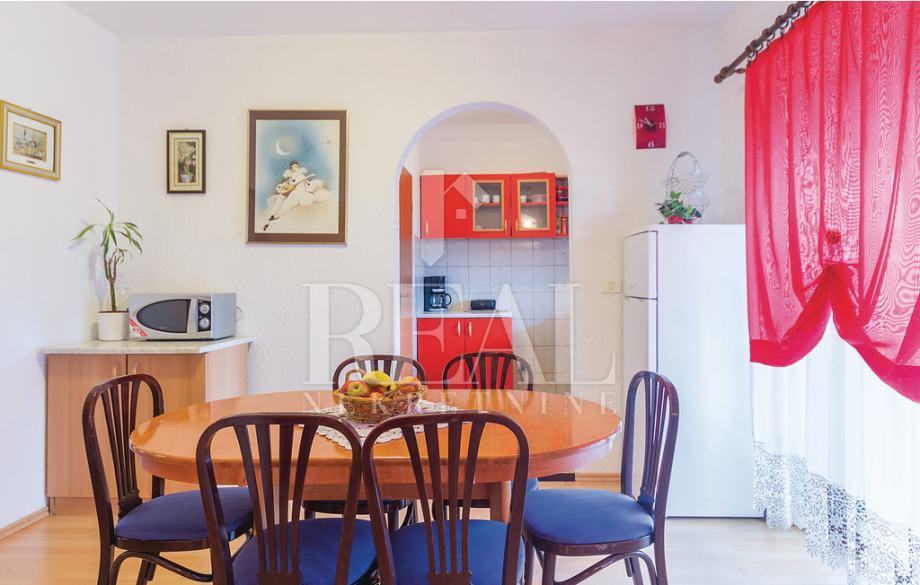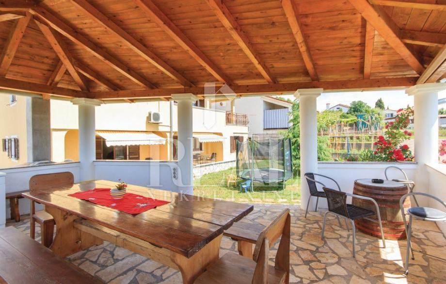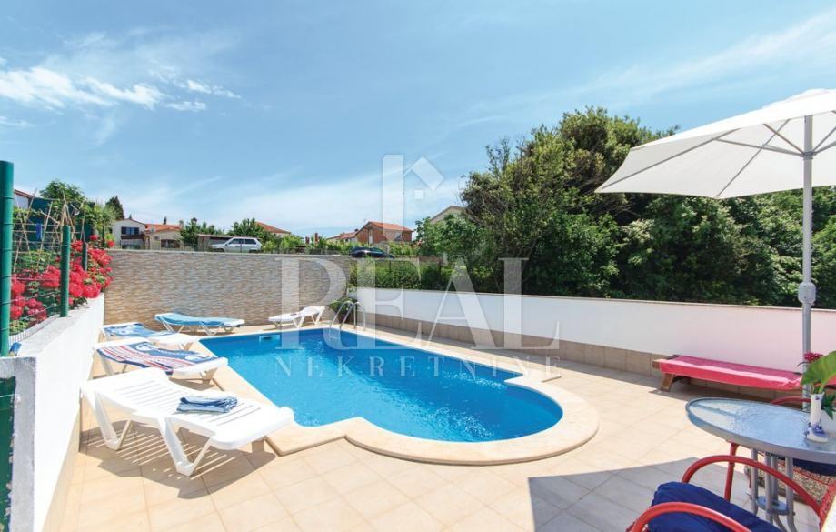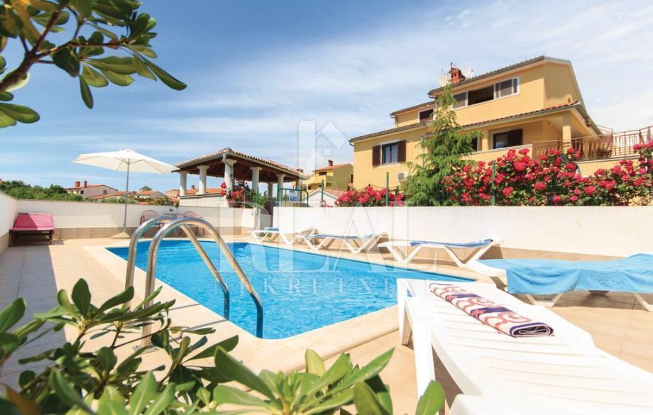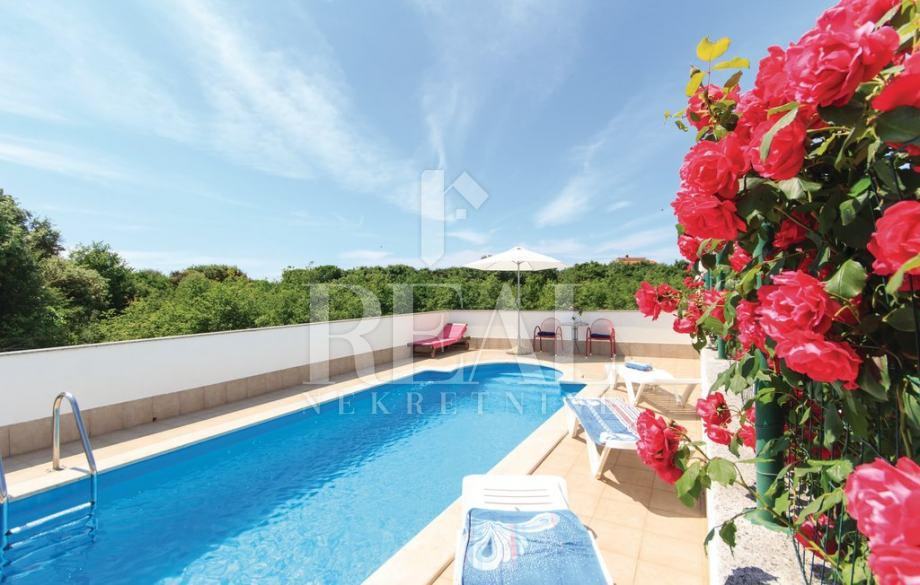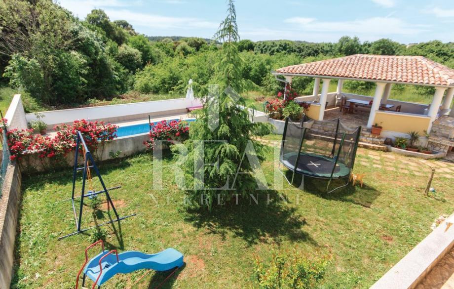 Na prodaju novija kuća sa bazenom u Puli na Velom Vrhu. Kuća je sagrađena 2000.-te godine, ima 305 m2 stambenog prostora i 815 m2 okućnice. U prizemlju se nalaze dva stana, jedan je jednosobni, drugi je dvosobni. Na katu se nalazi jedan veliki trosobni stan (mogu se razdvojiti u dva stana jer ima dva brojila za struju). Na drugom katu se nalazi dvosoban stan. Kuća još ima i spremište od 30 m2, garažu od 26 m2 i bazen. Podaje se kompletno namještena.U funkciji je ljetnog najma te je idealna kao investicija ili za život sobzirom na lokaciju ..Grijanje je sa klima uređajima i centralnim na plin.